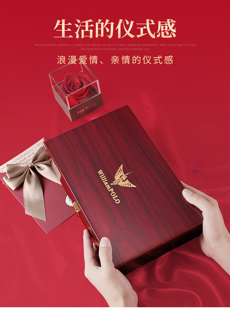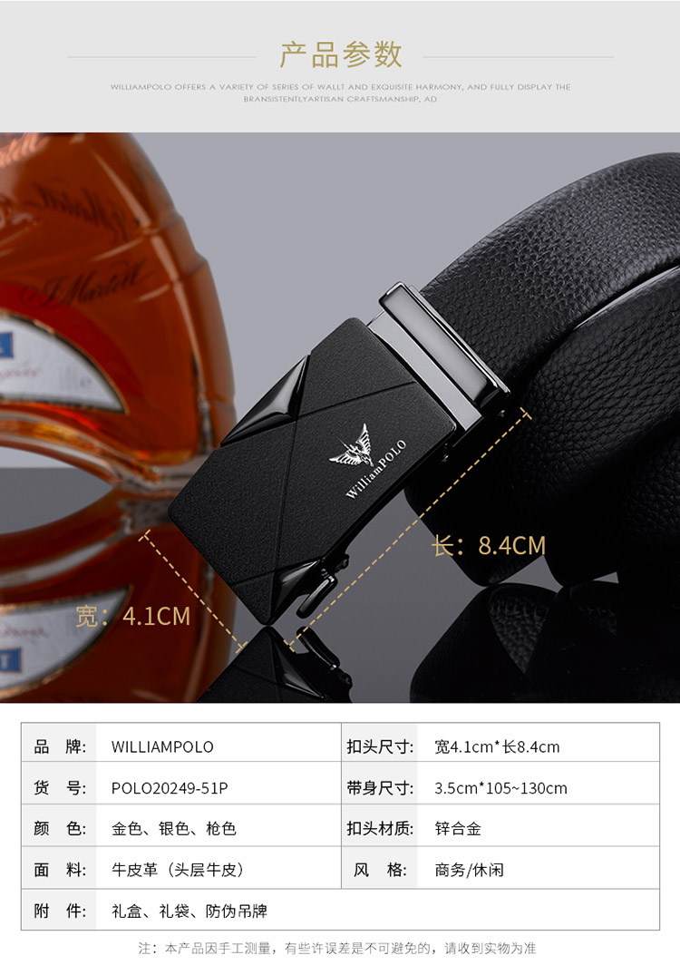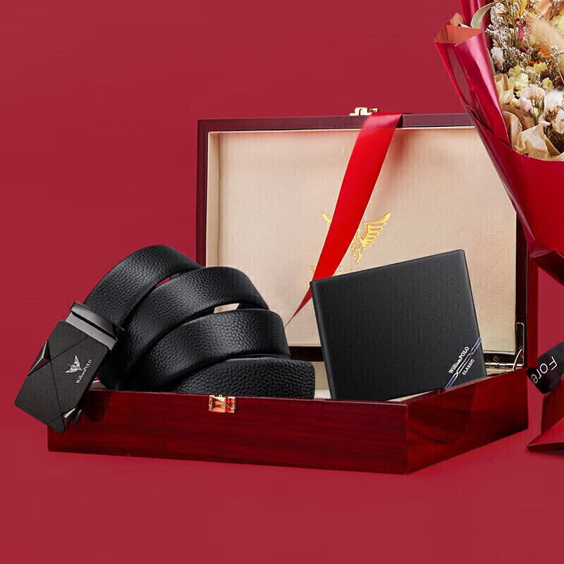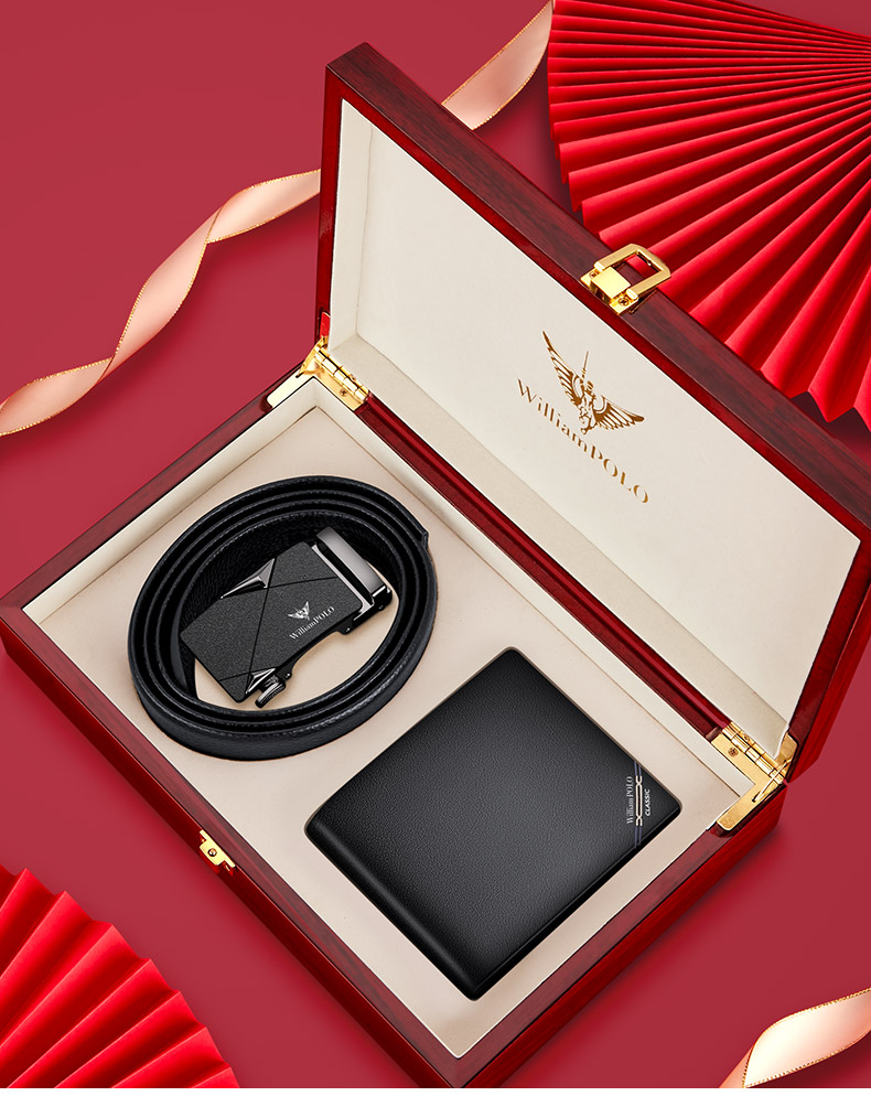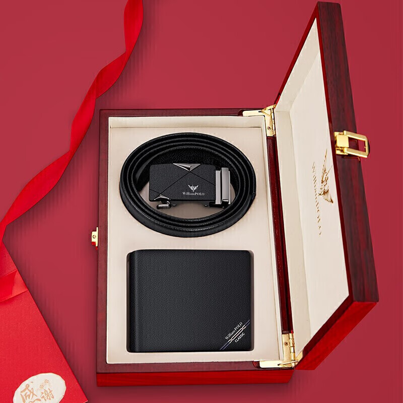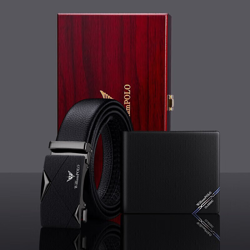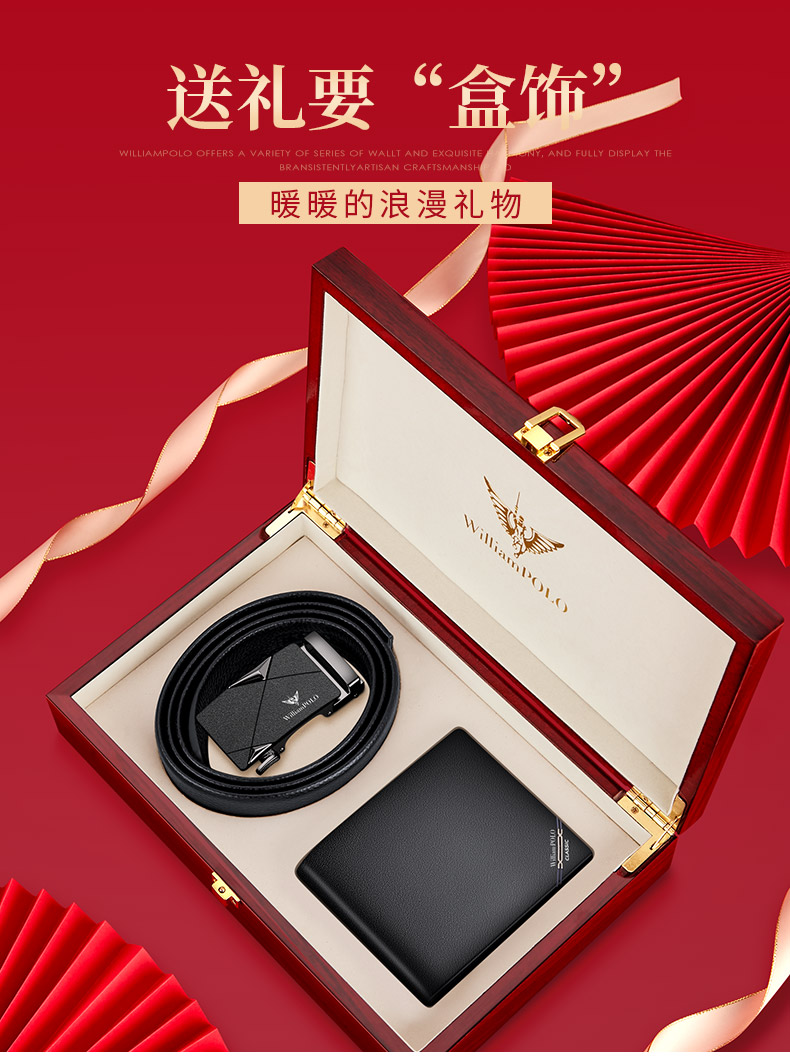 (特)英皇保罗WILLIAMPOLO男士钱包皮带礼盒套装牛皮自动扣皮带横款钱包送父亲男友老公生日情人节礼物LHP003