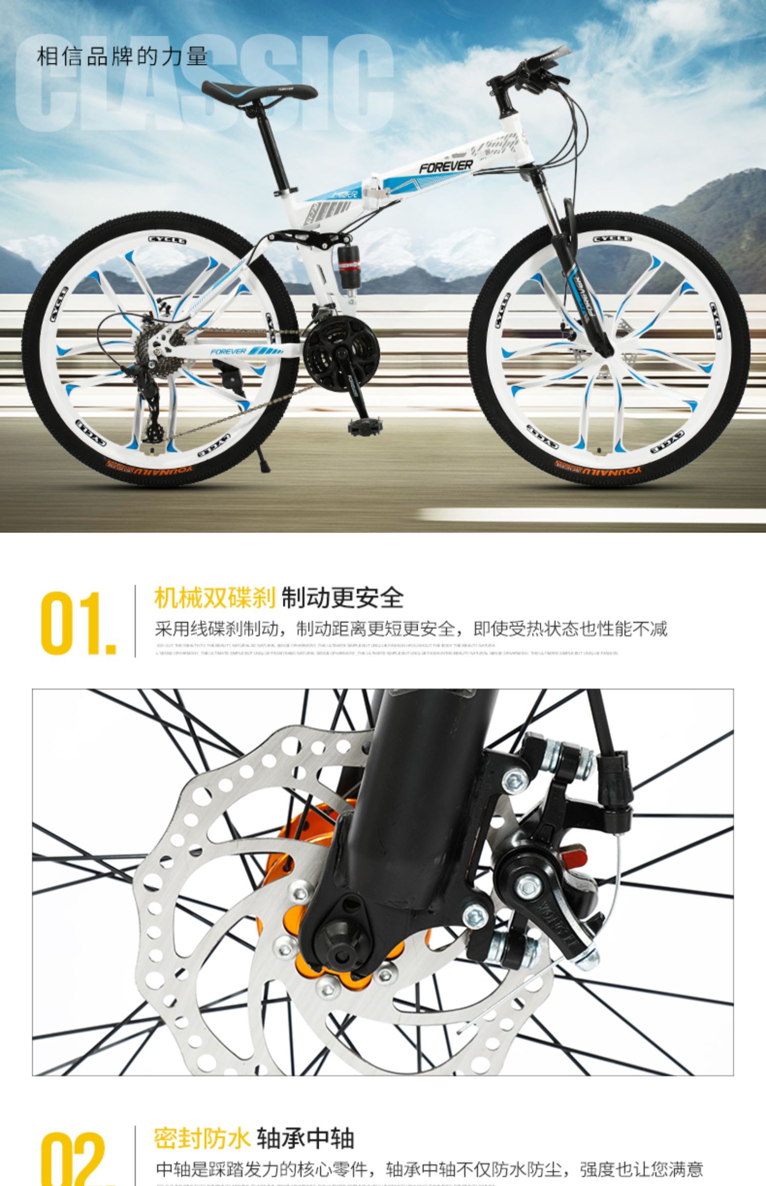 (特)上海永久牌山地车折叠车男式女式学生变速越野大人单车成人自行车