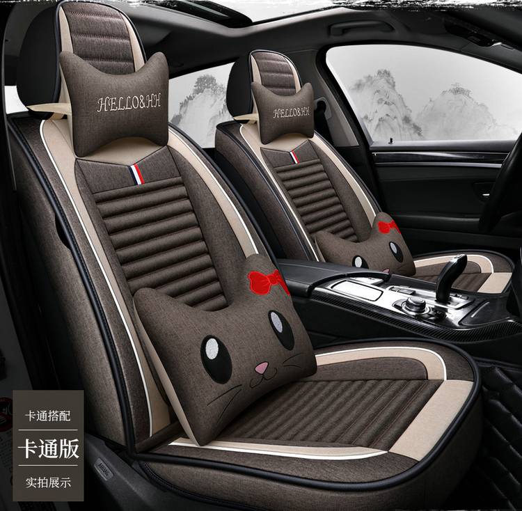 (特)汽车坐垫新款四季通用亚麻布艺座套冬季小车坐套全包围专用座垫套