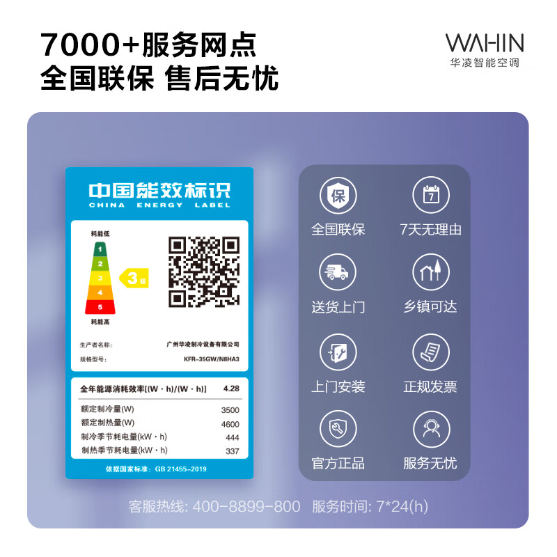 (特)华凌空调 新能效 手机智能遥控 变频冷暖 卧室防直吹 1.5匹 空调挂机 KFR-35GW/N8HA3
