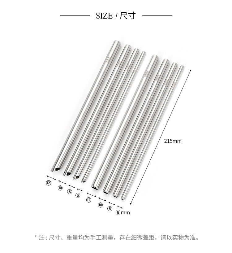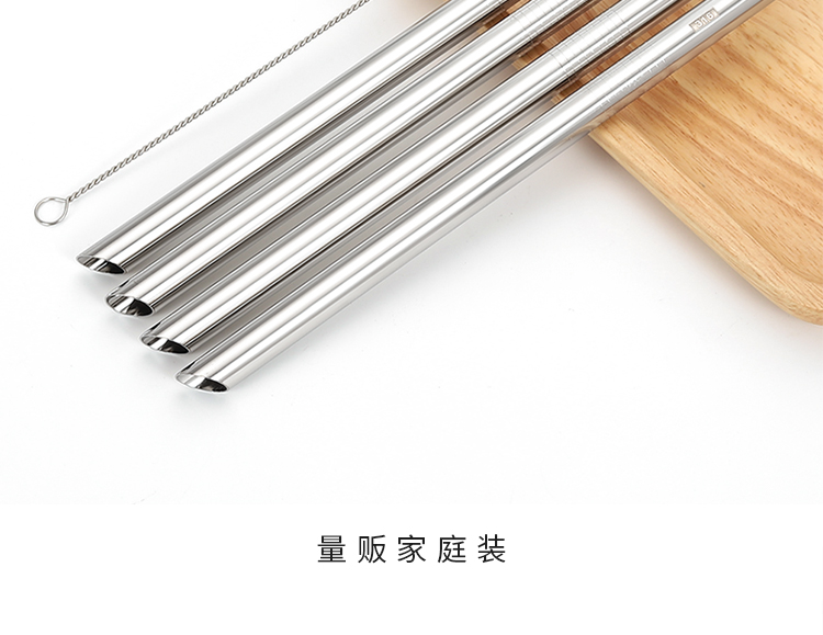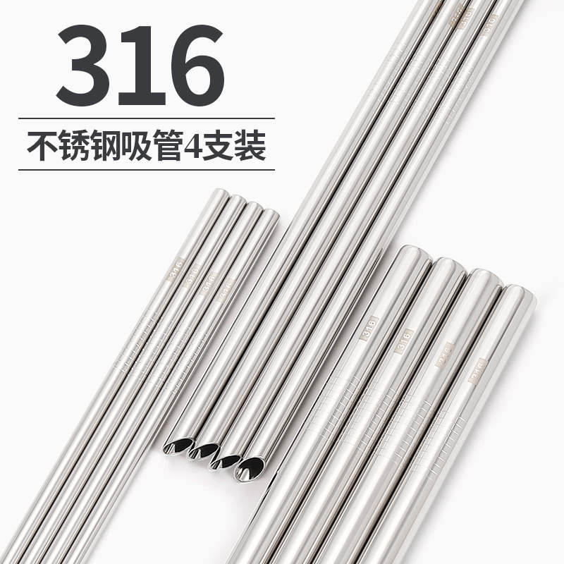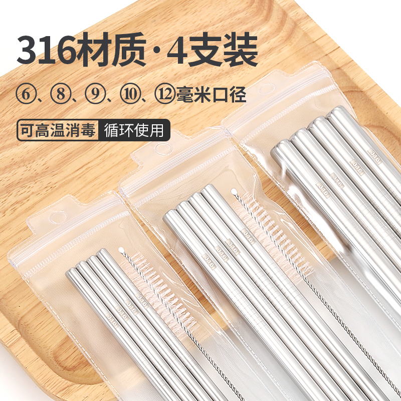(特)【4支量贩装】316不锈钢吸管耐高温家用环保珍珠奶茶加长金属饮管