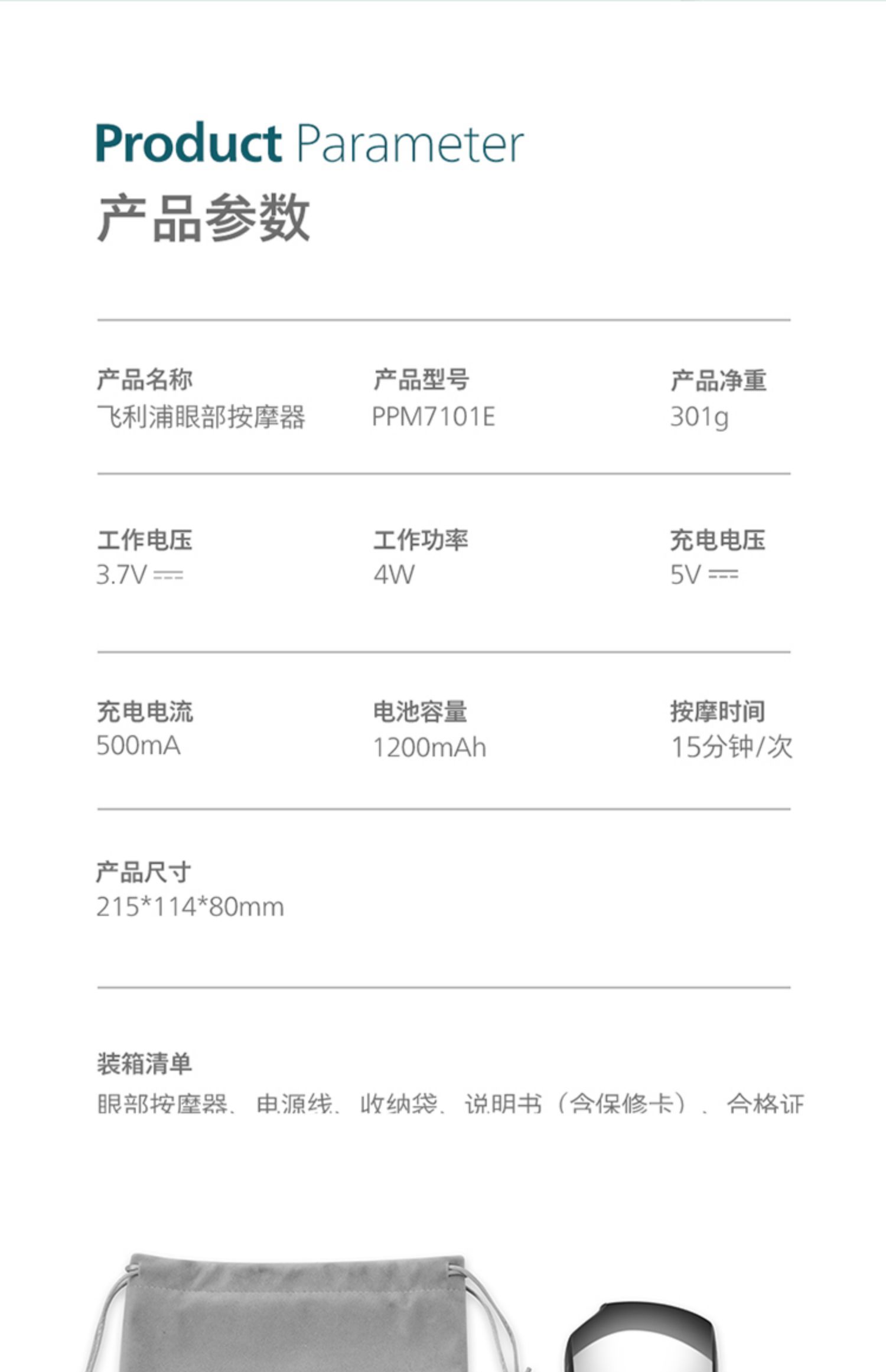飞利浦眼部按摩仪眼睛护眼仪按摩器润眼仪缓解干涩疲劳神器眼罩 PPM7101E
