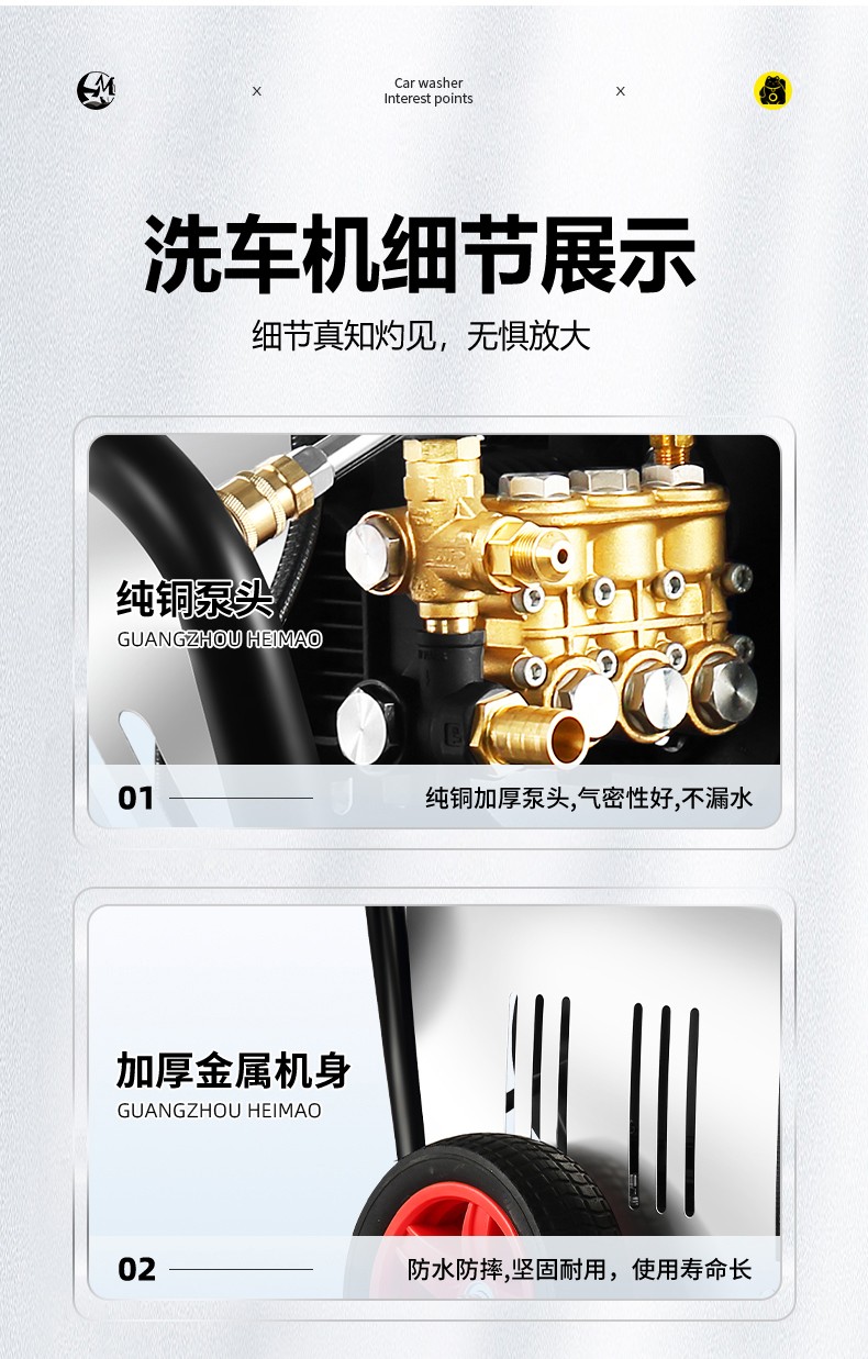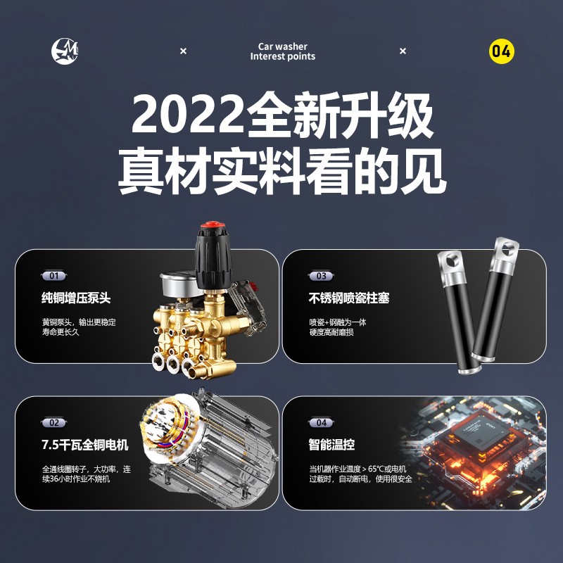 (特)德国品质 高压洗车机商用220v刷车泵家用清洗机插电式大功率增压泵便携式养殖场洗车店洗车水枪洗车器 220V家用2.2千瓦130公斤水压