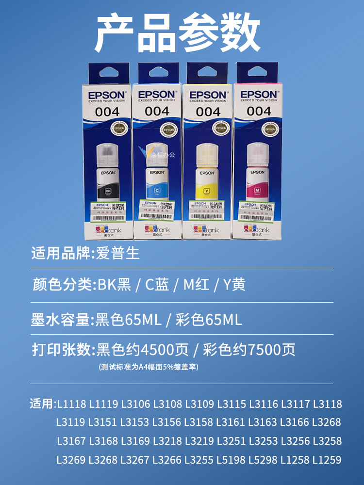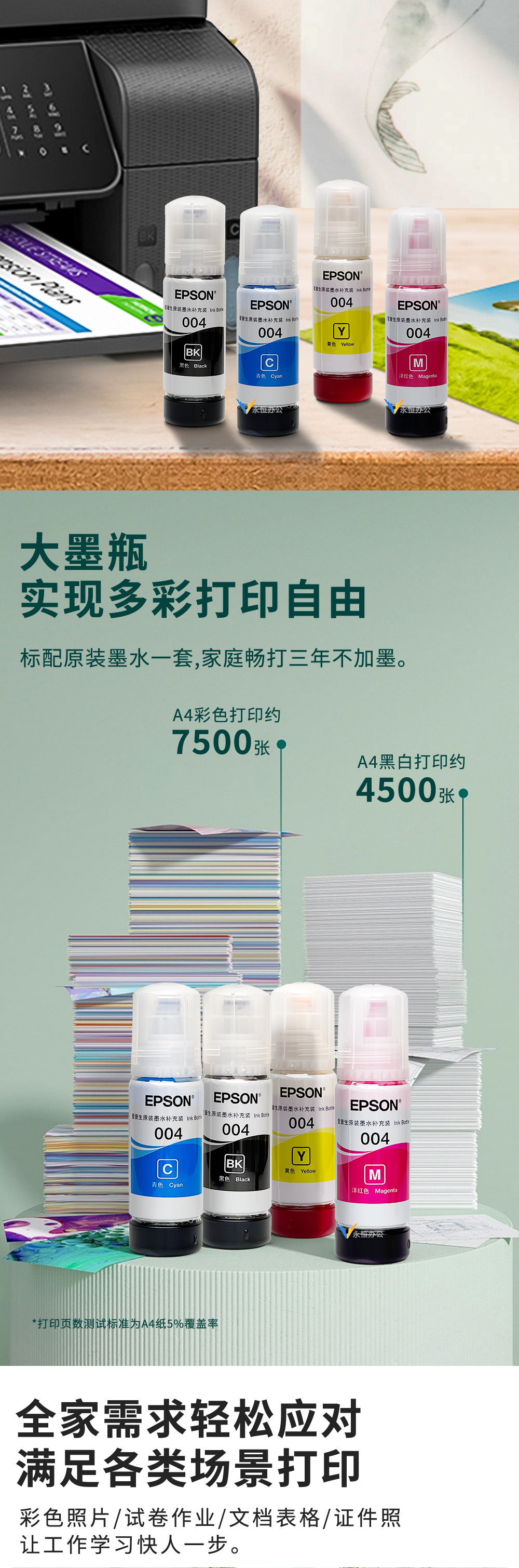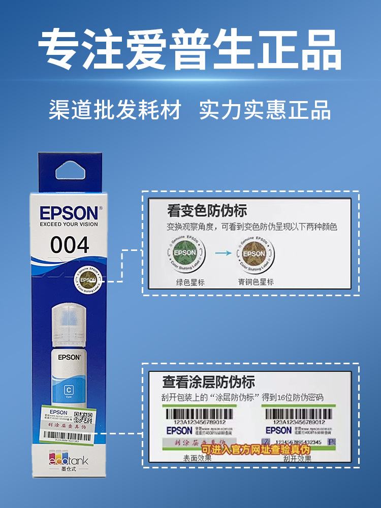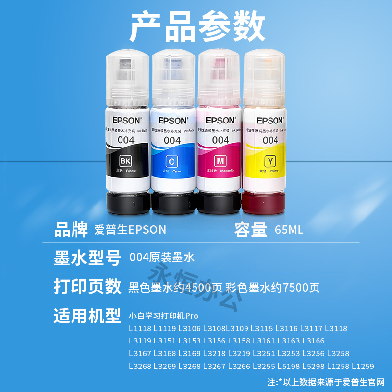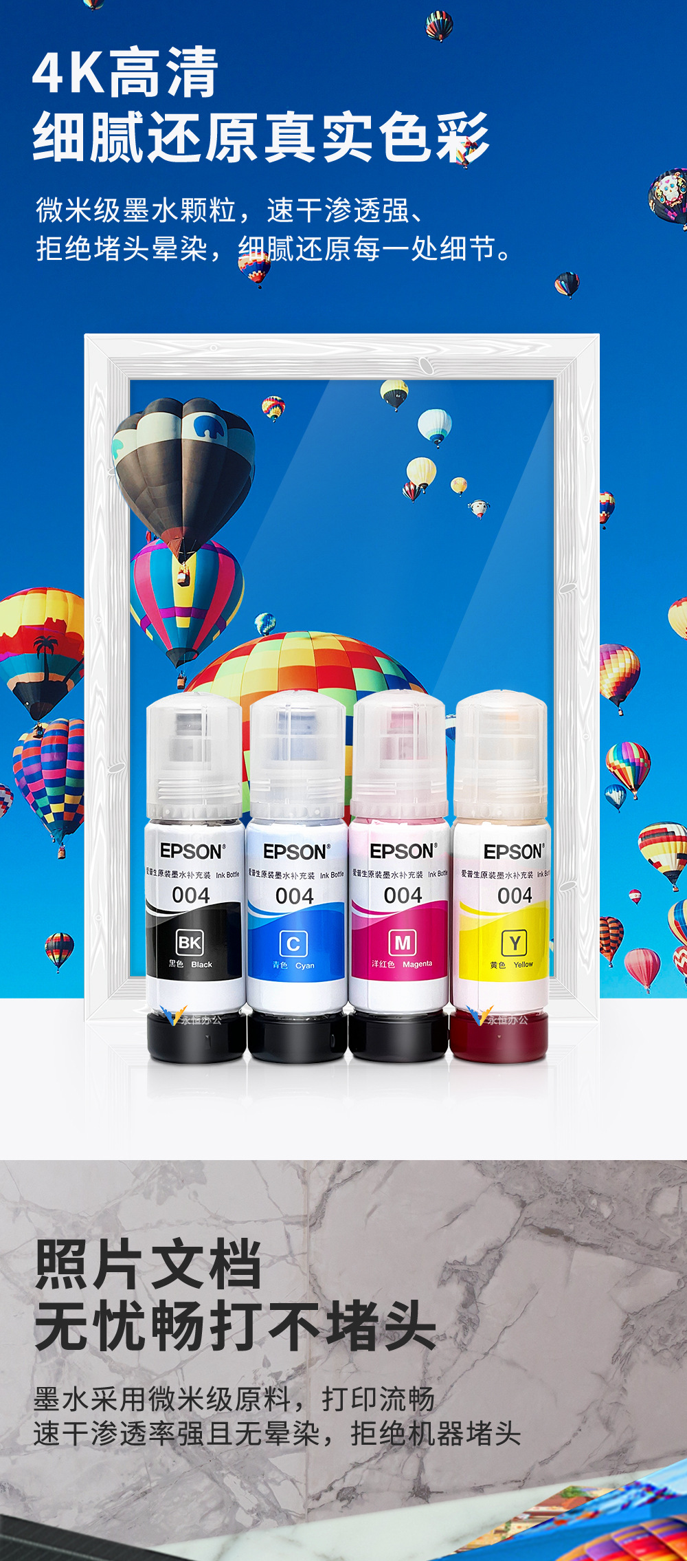 (特)爱普生004墨水原装黑色彩色墨盒l1118L3118L3158l3153打印机墨水