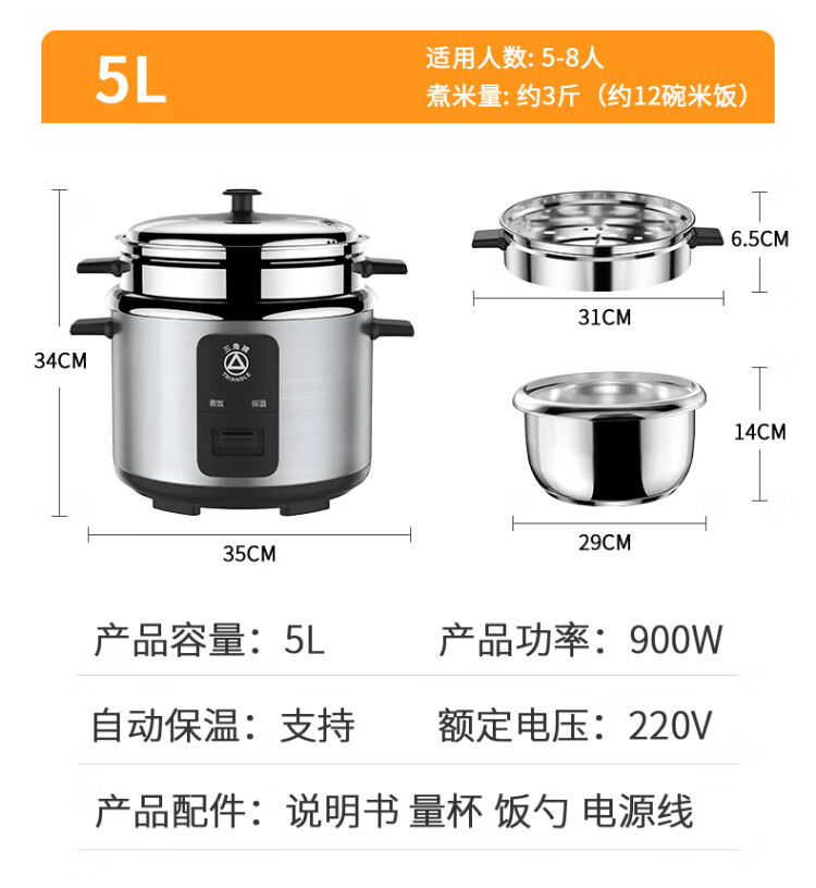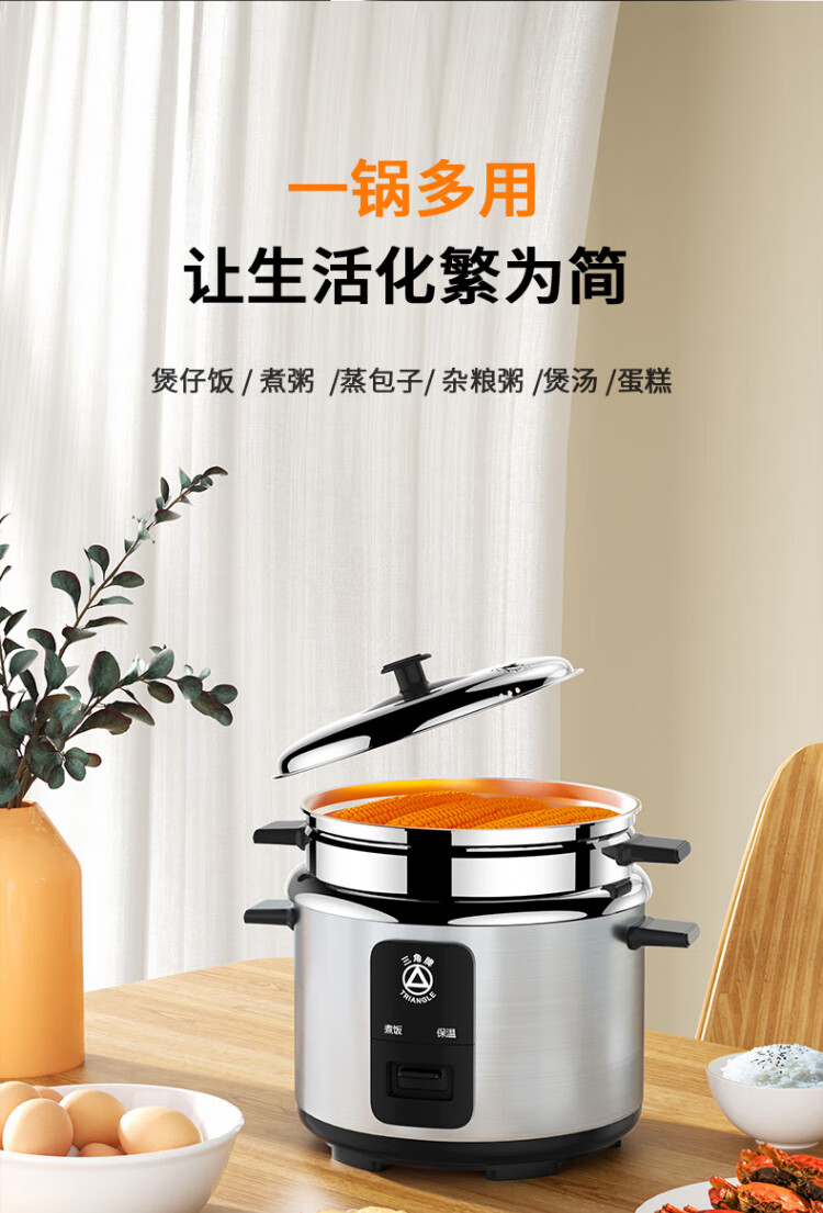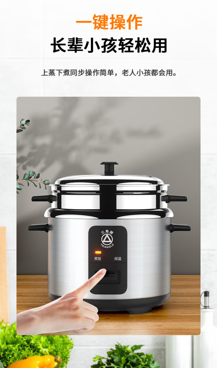 (特)三角牌(Triangle)不锈钢直身电饭锅电饭煲老式全钢家用煮饭锅【指定产品,拍前联系客服】