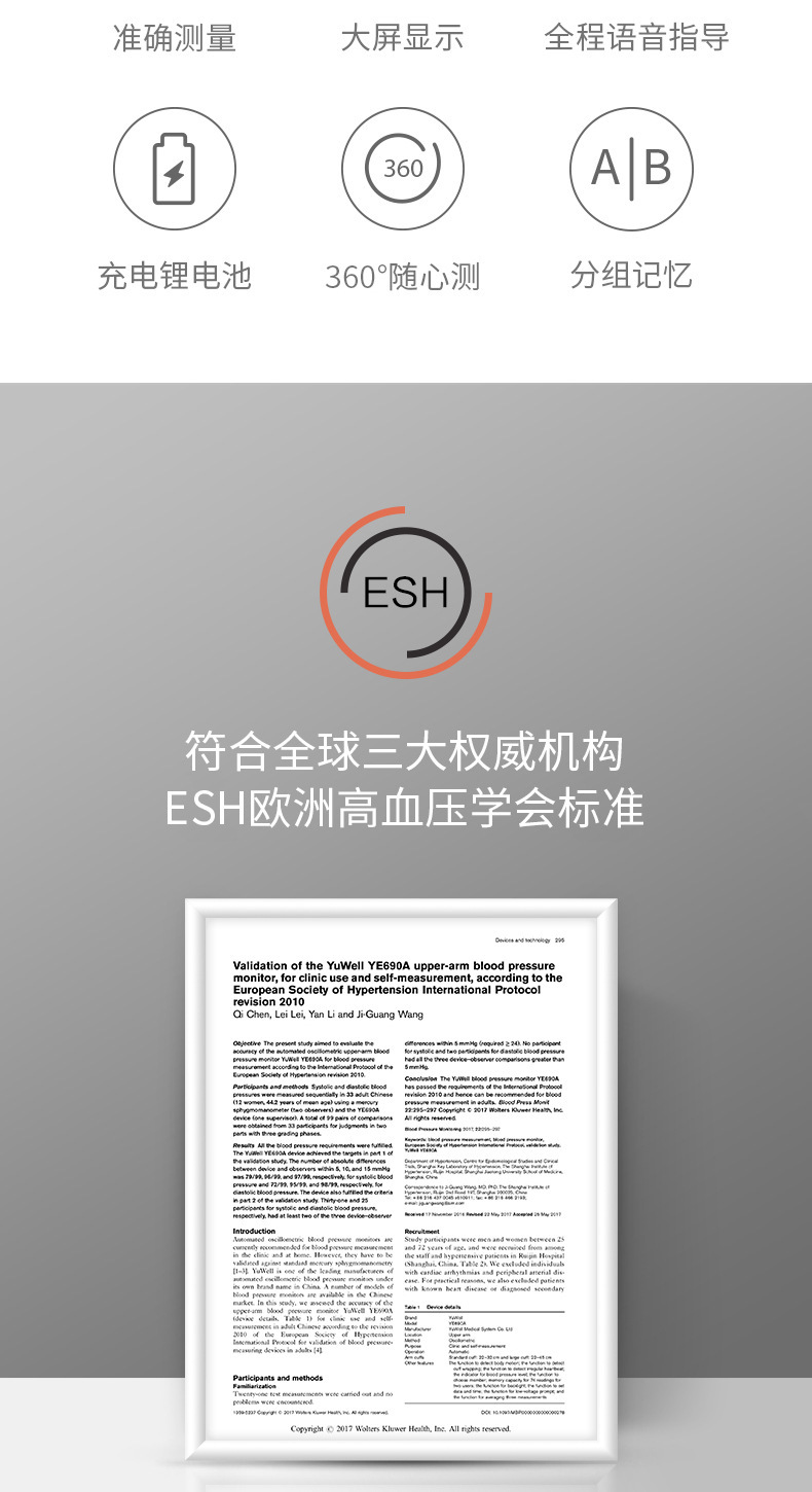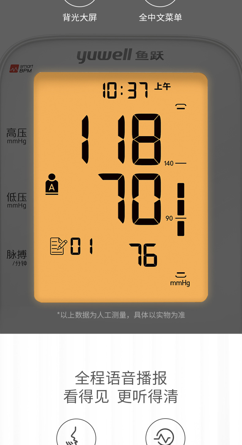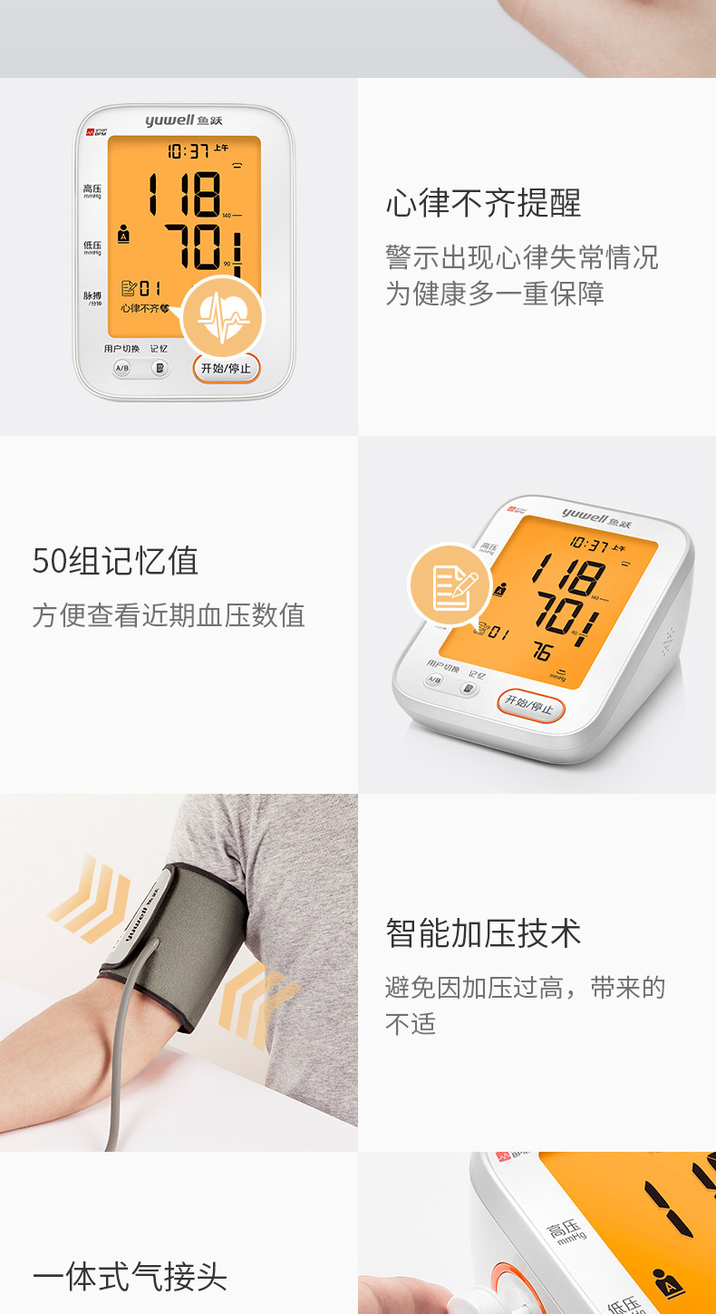 鱼跃电子血压计YE680CR充电语音上臂式全自动精准血压测量仪家用