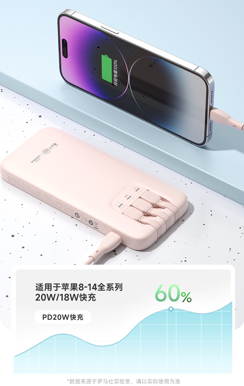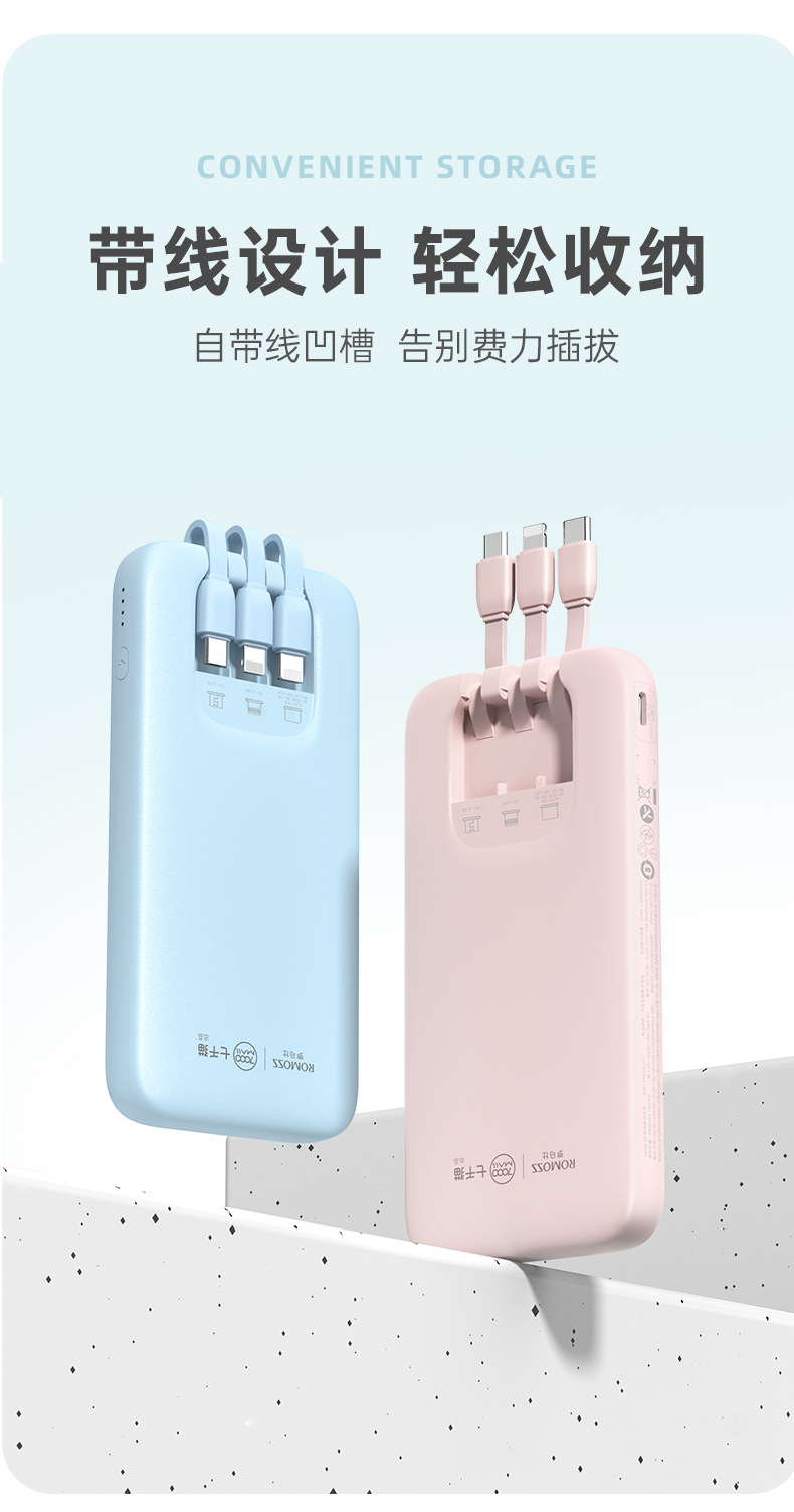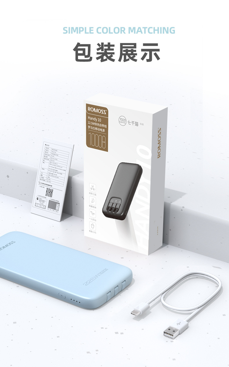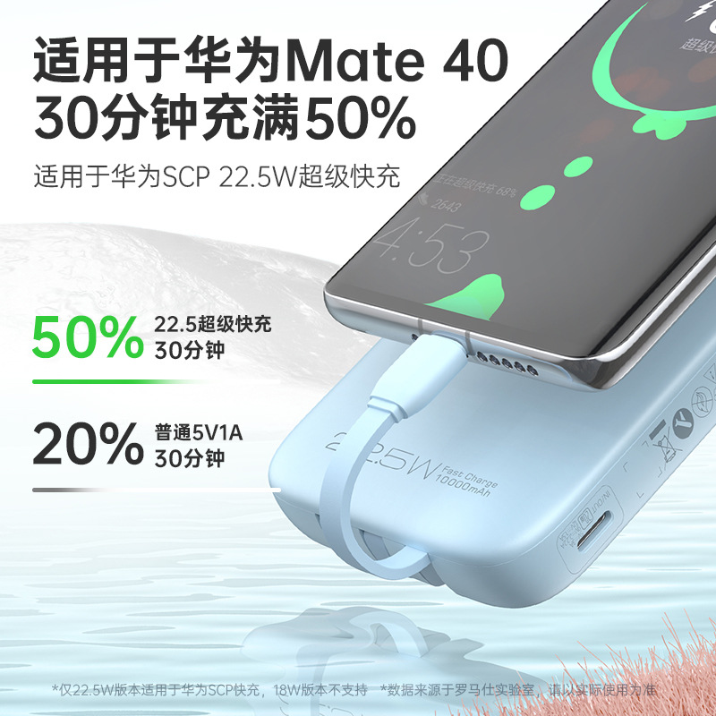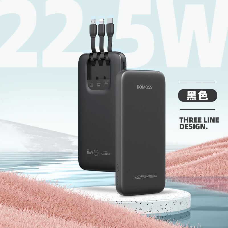 (特)罗马仕10000毫安充电宝自带线PD20W快充22.5W便携1万移动电源