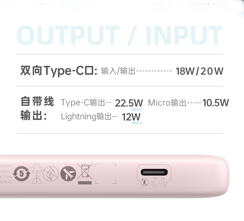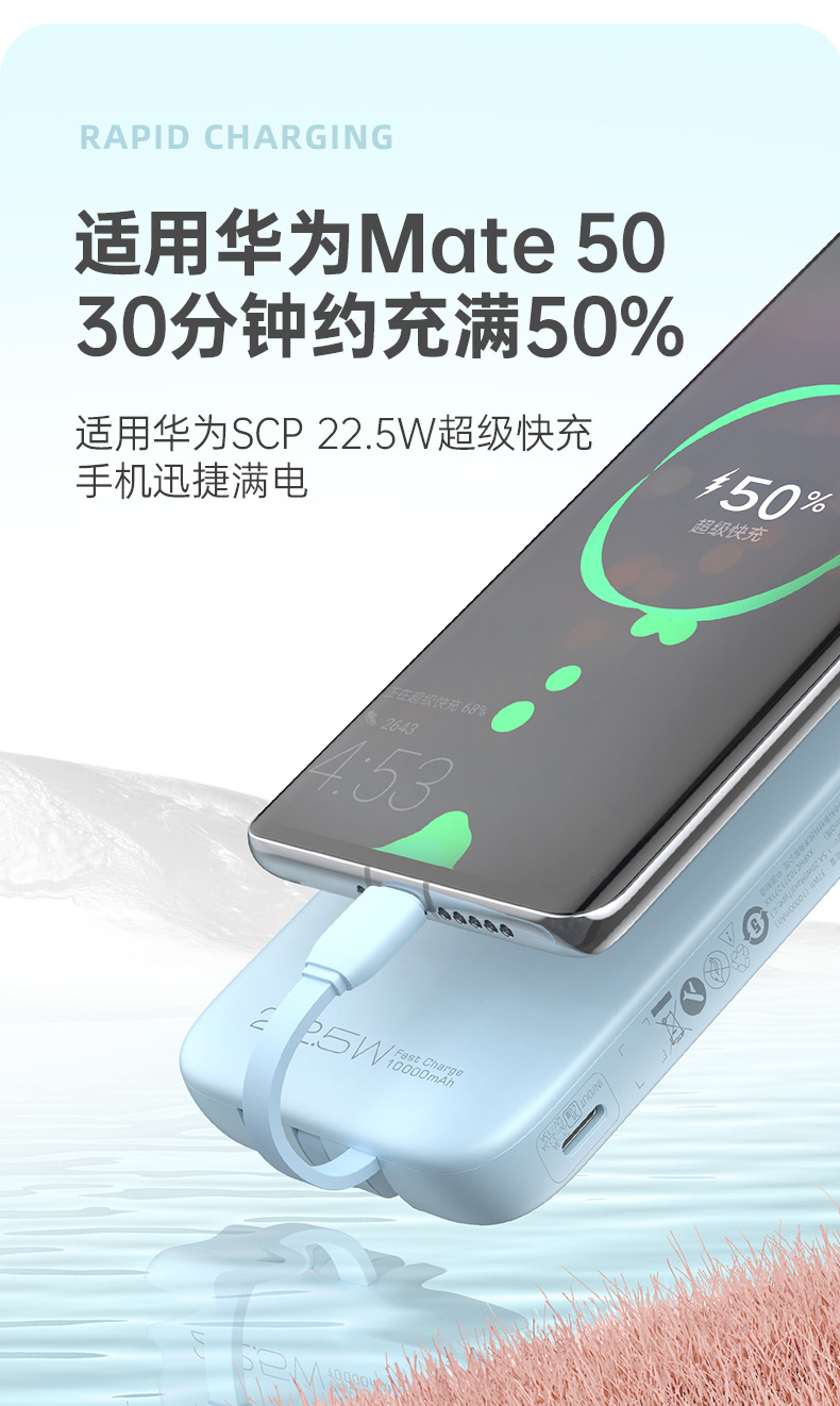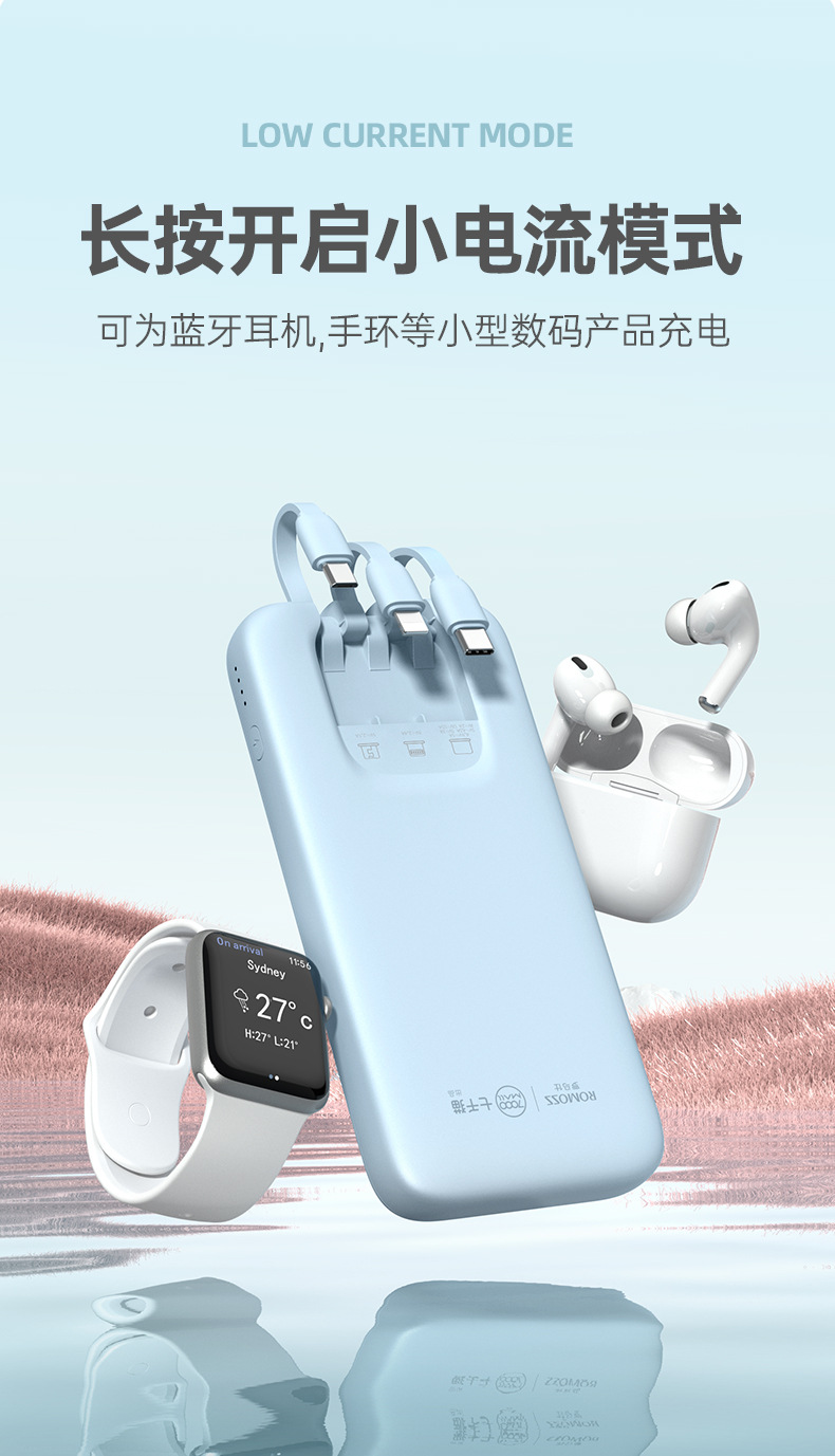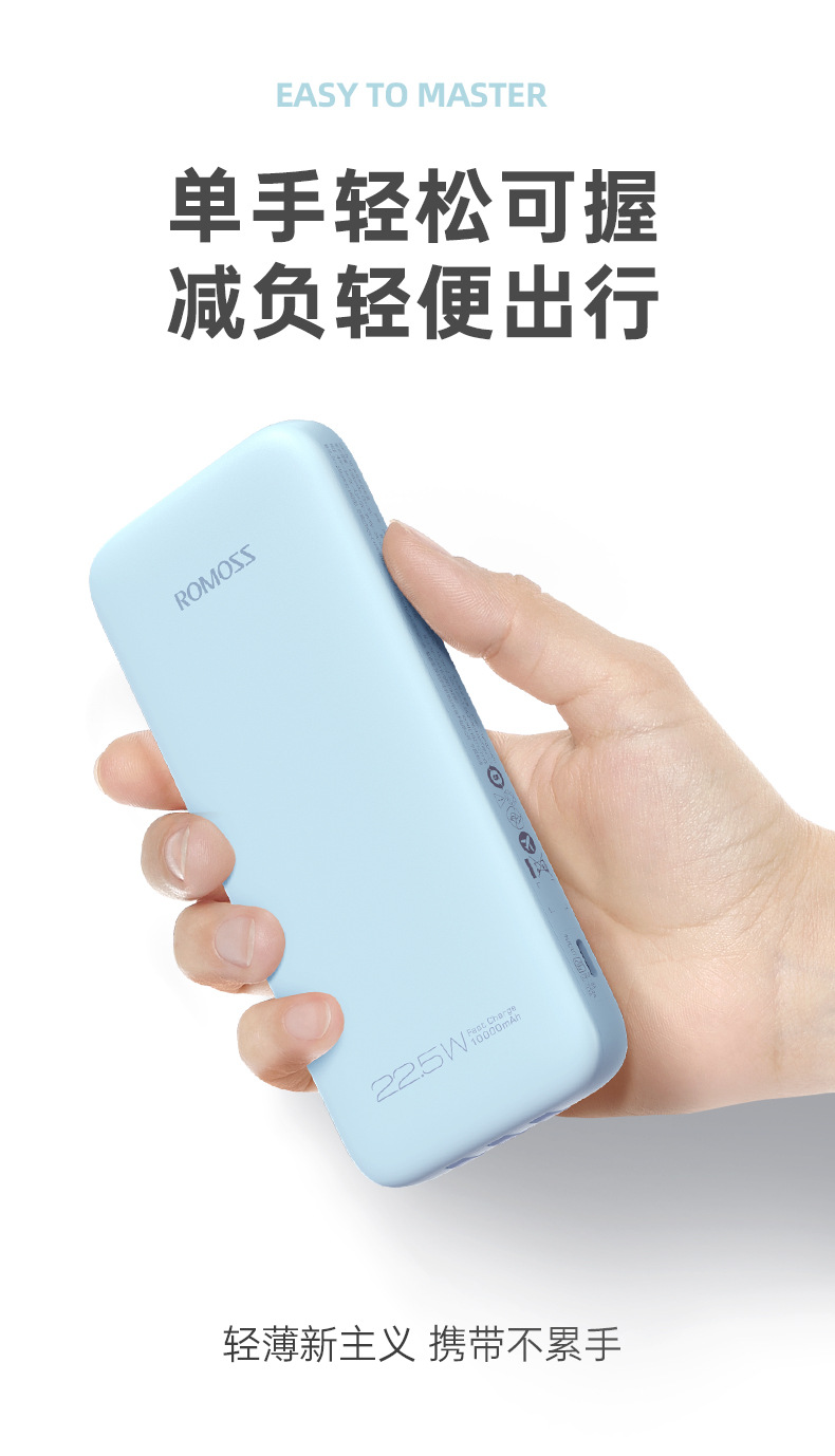 (特)罗马仕10000毫安充电宝自带线PD20W快充22.5W便携1万移动电源