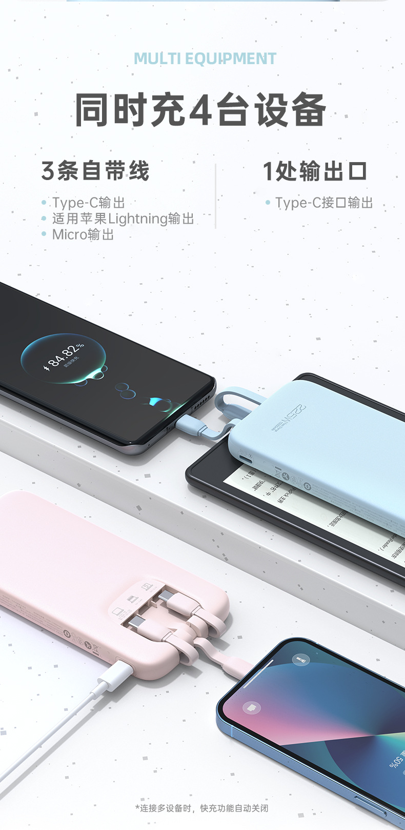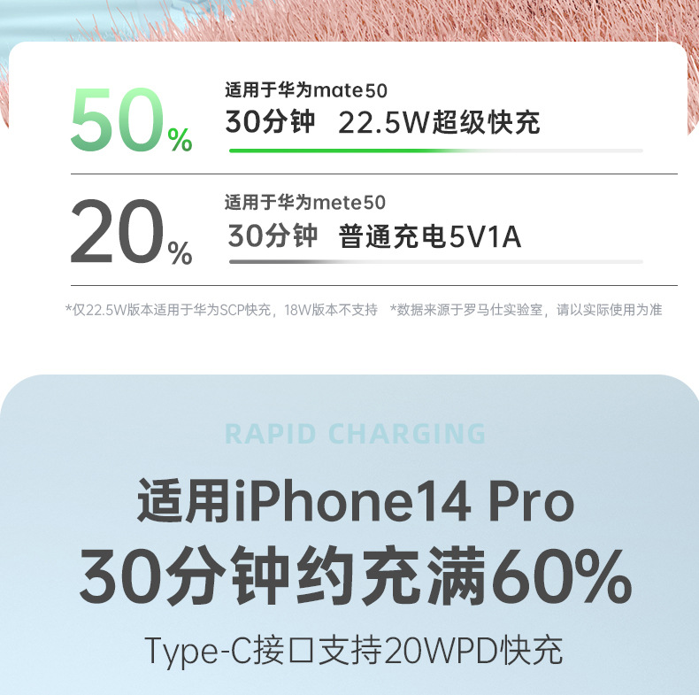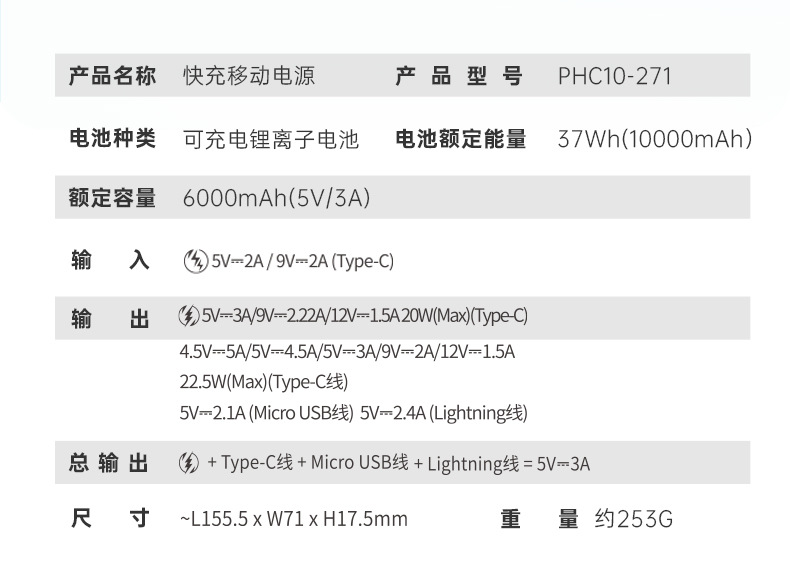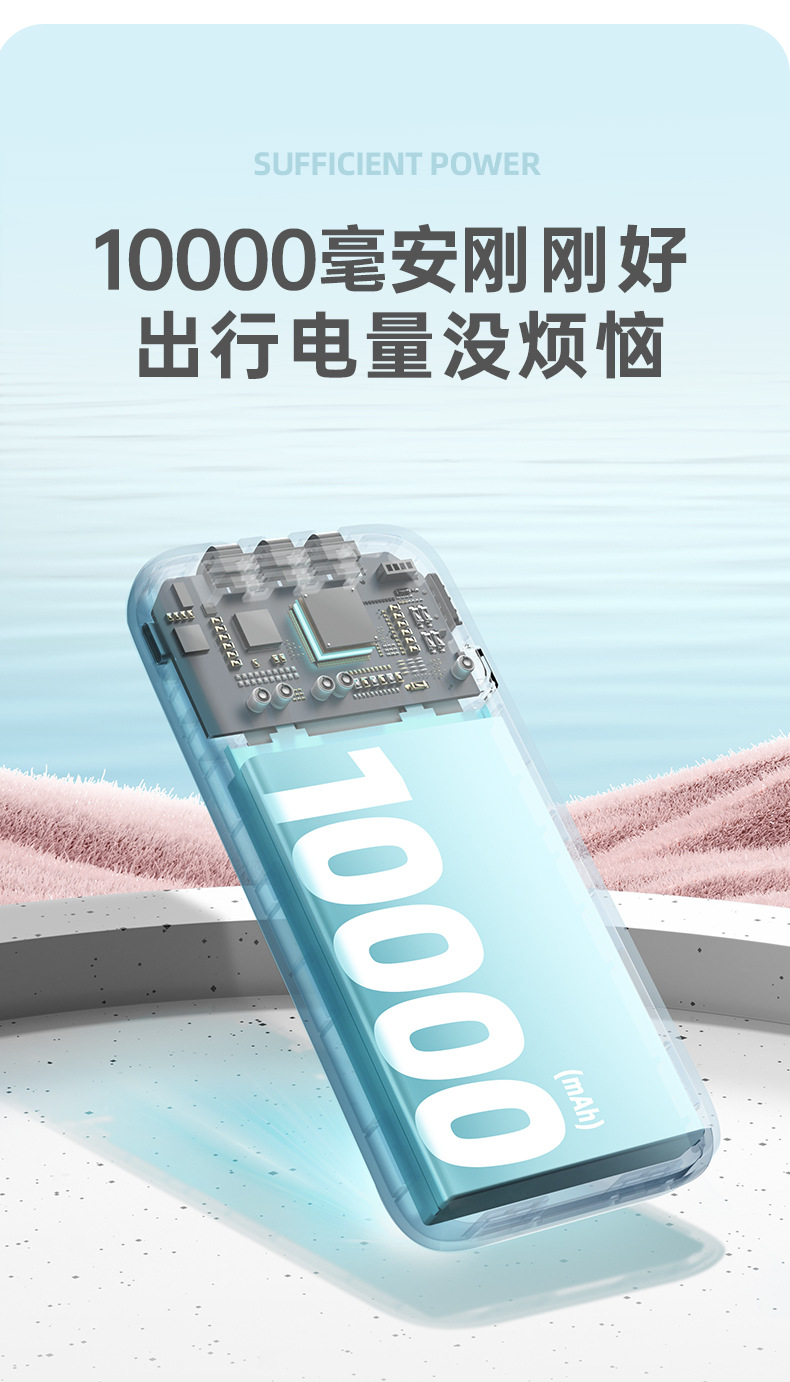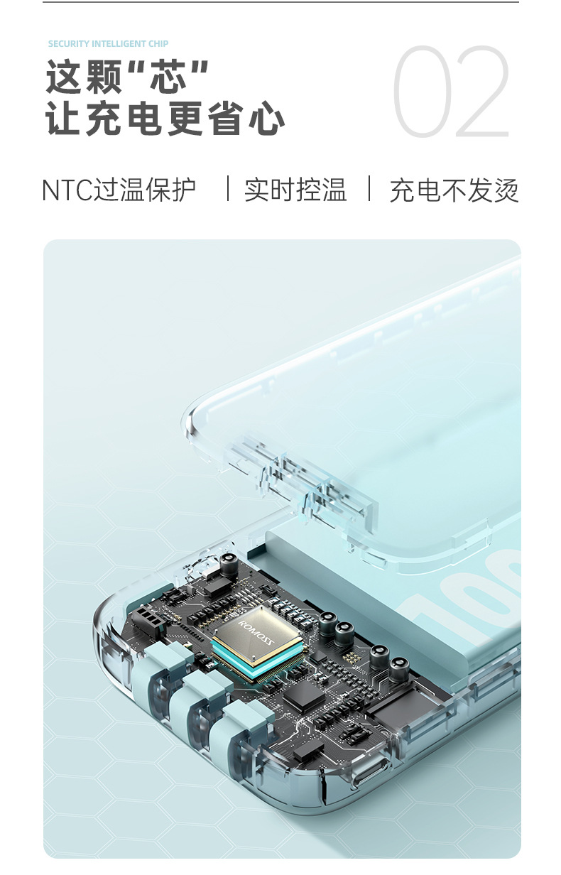 (特)罗马仕10000毫安充电宝自带线PD20W快充22.5W便携1万移动电源