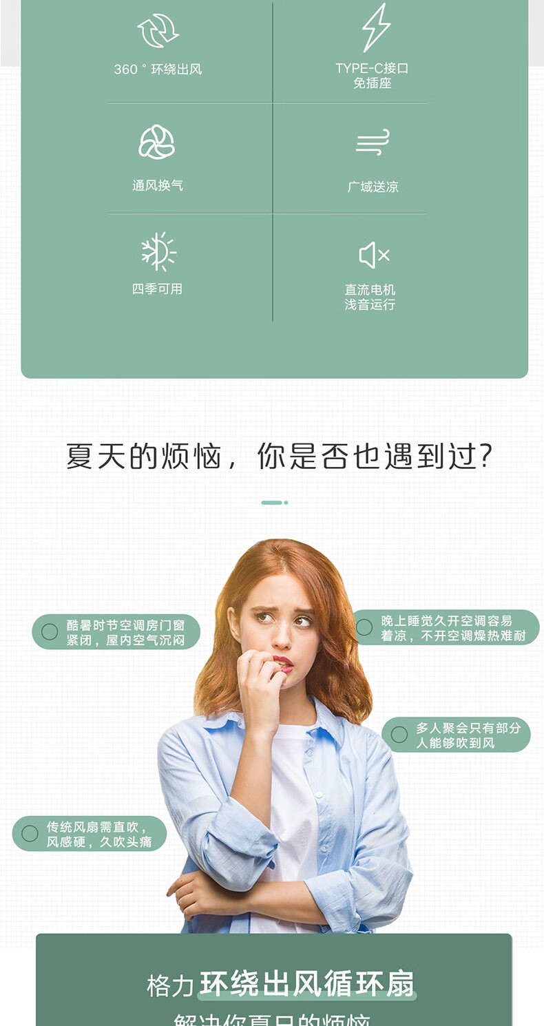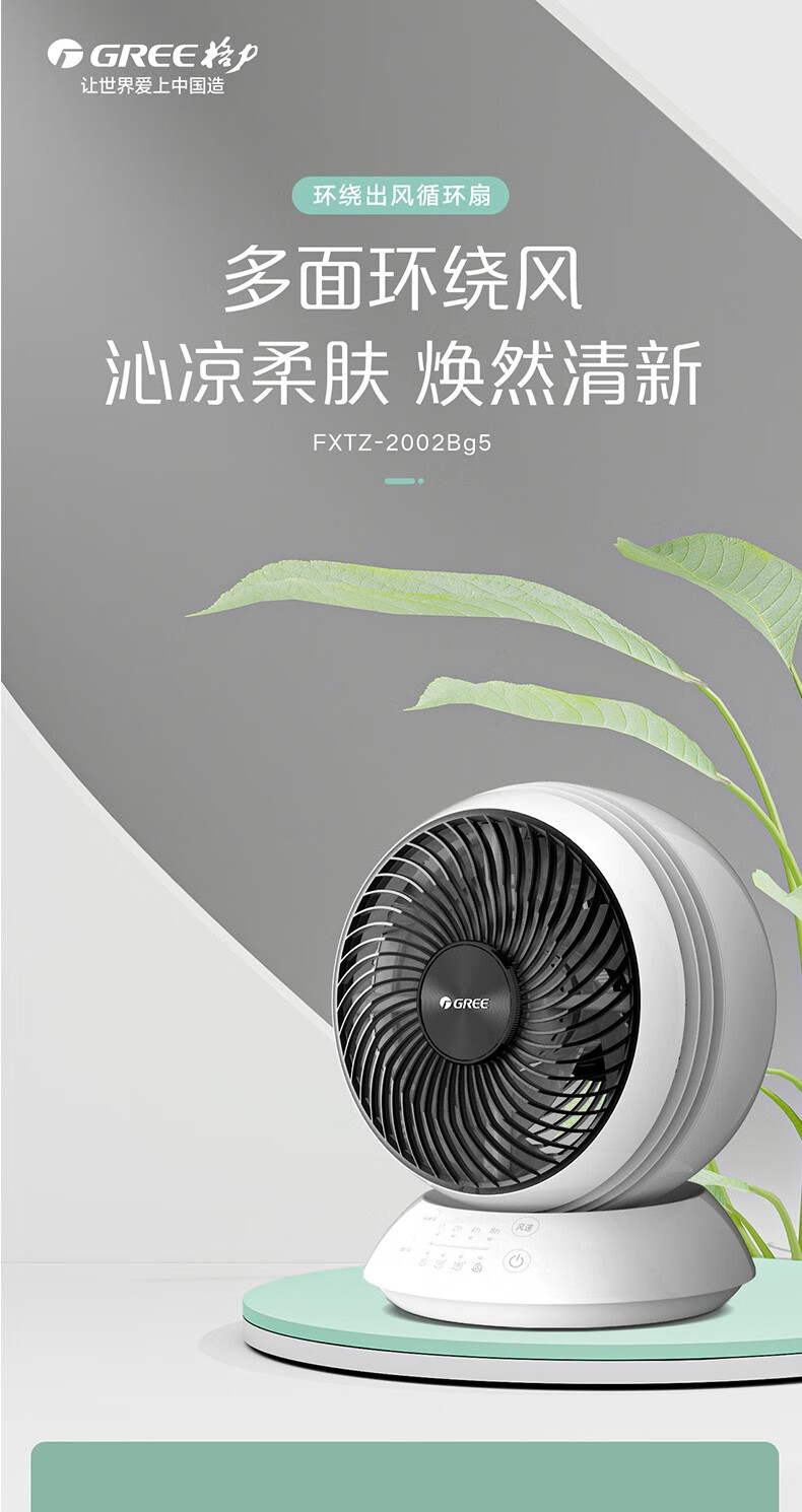 (特)格力(GREE)空气循环扇远程遥控小风扇通风换气电扇直流变频电风扇台式 FXTZ-2002Bg5