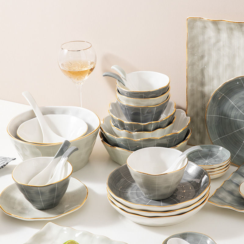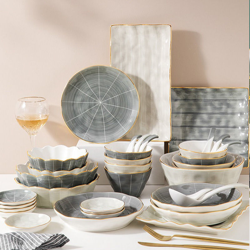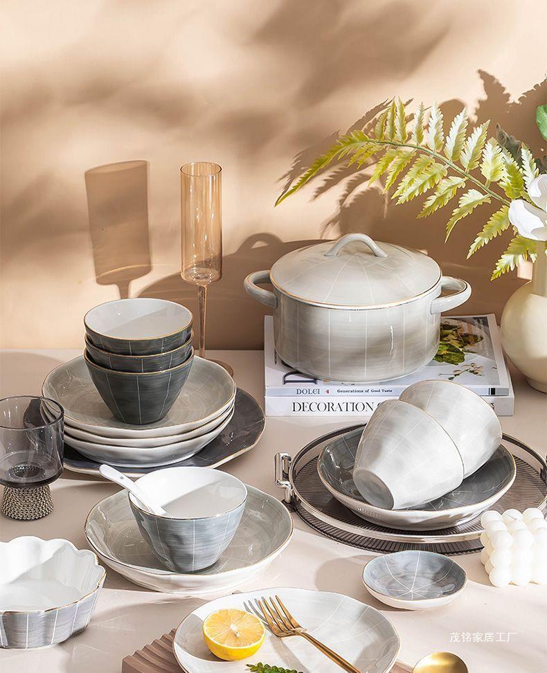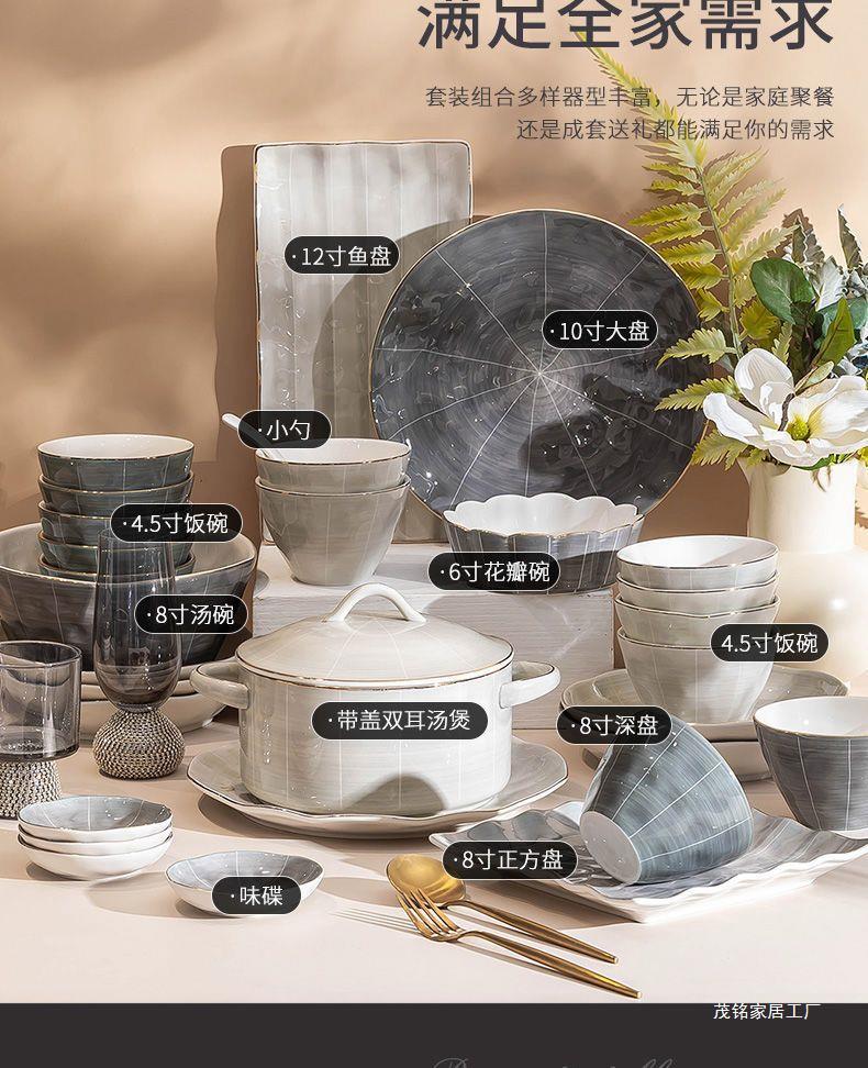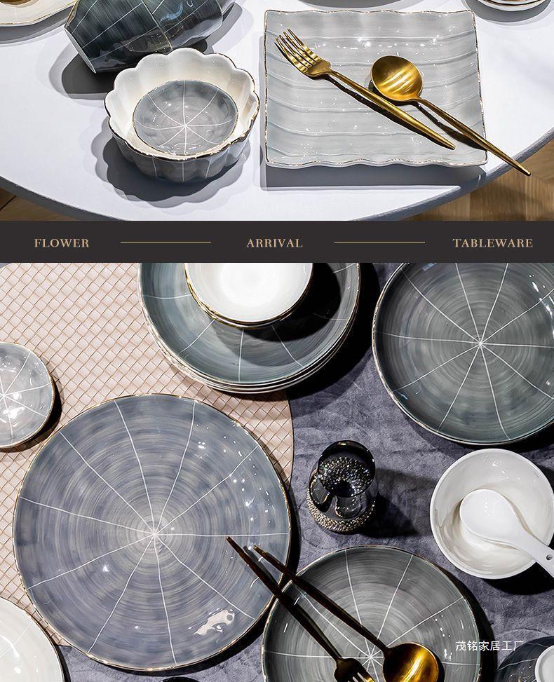 (特)北欧轻奢碗碟套装家用高级陶瓷碗筷盘子组合餐具