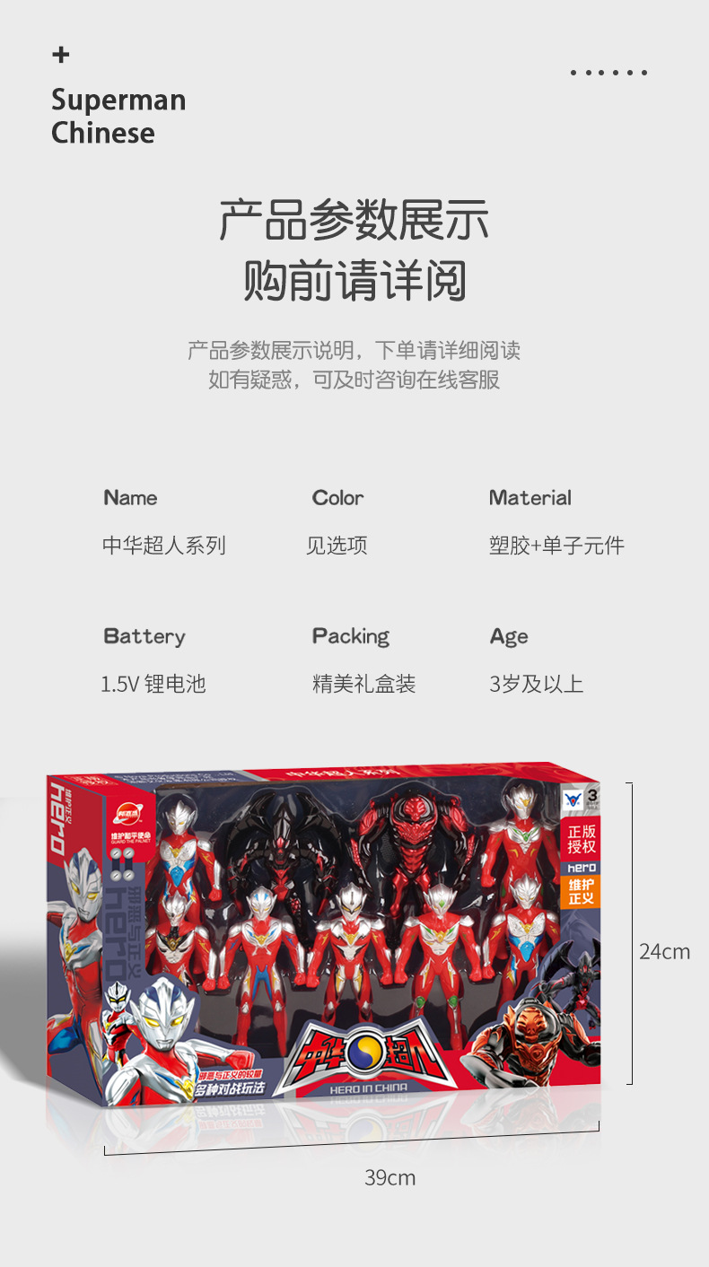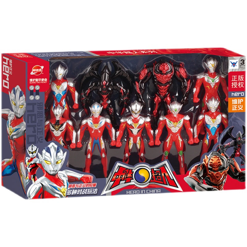 (特)乐加酷中华超人奥特曼套装多关节可动怪兽儿童超大变形玩具生日礼物男孩 【9个装】7超人+2异形怪兽