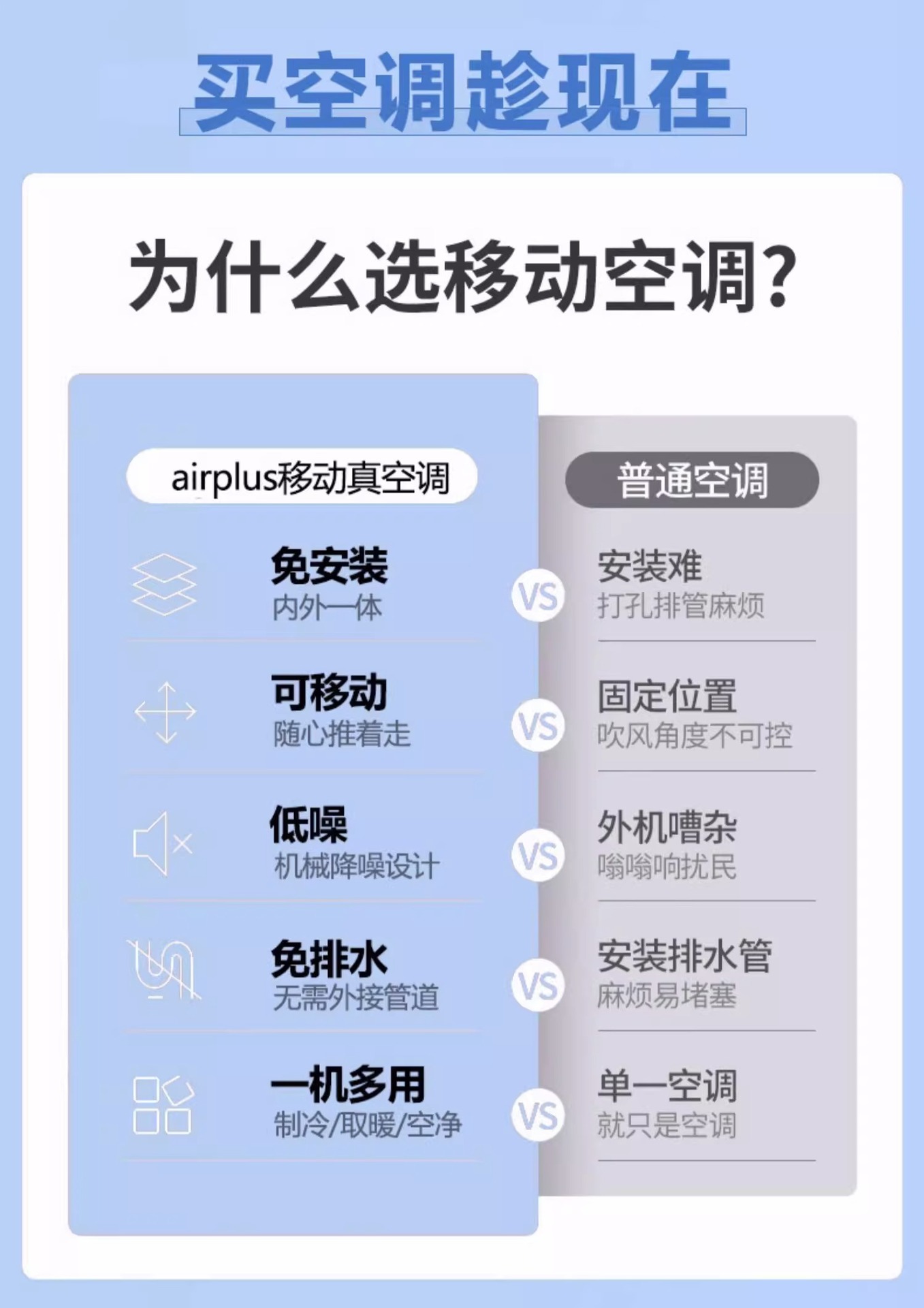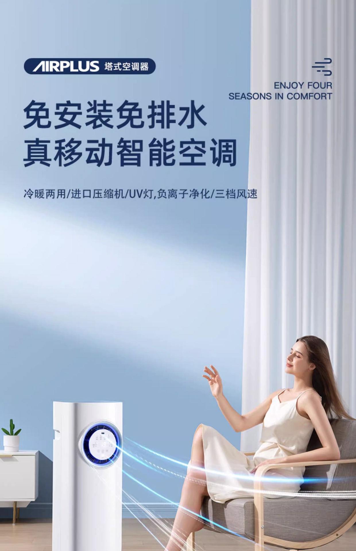 (特)airplus移动空调冷暖一体机家用小型冷风扇厨房非静音制冷免安装