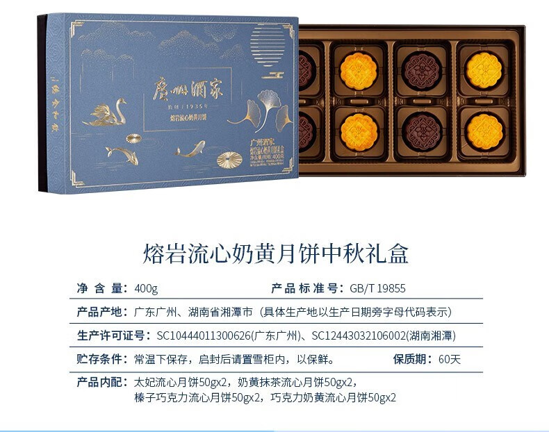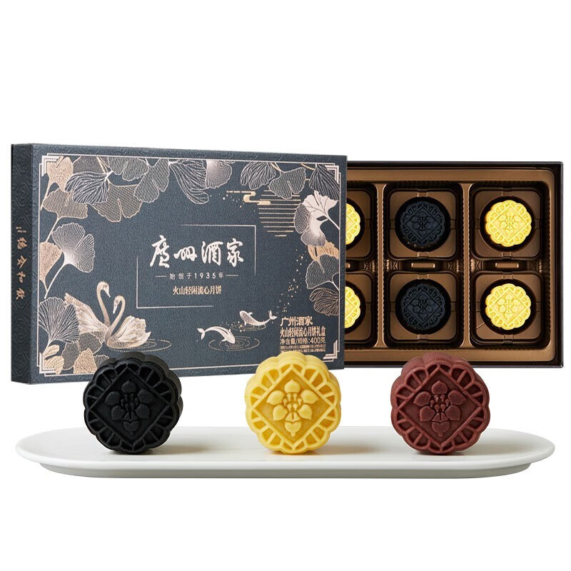 (特)广州酒家火山轻闲流心月饼400g 中秋月饼礼盒广式月饼送礼