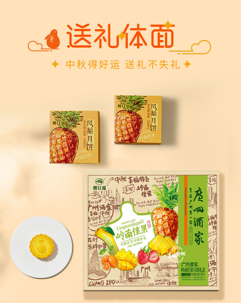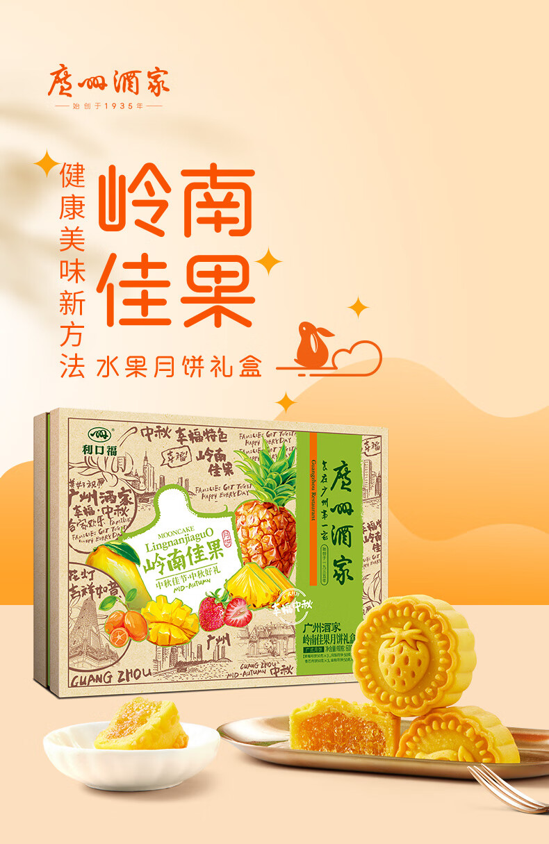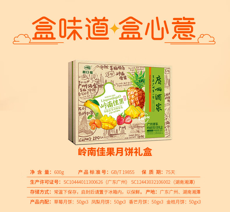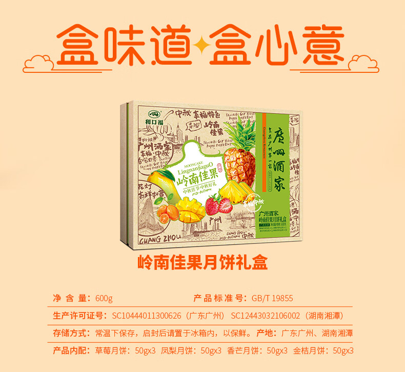 (特)广州酒家岭南佳果月饼礼盒600g利口福广式中秋月饼礼盒 企业团购中秋送礼手信 岭南佳果月饼礼盒600g