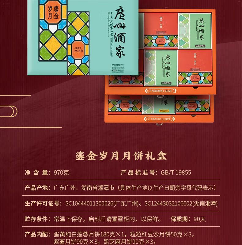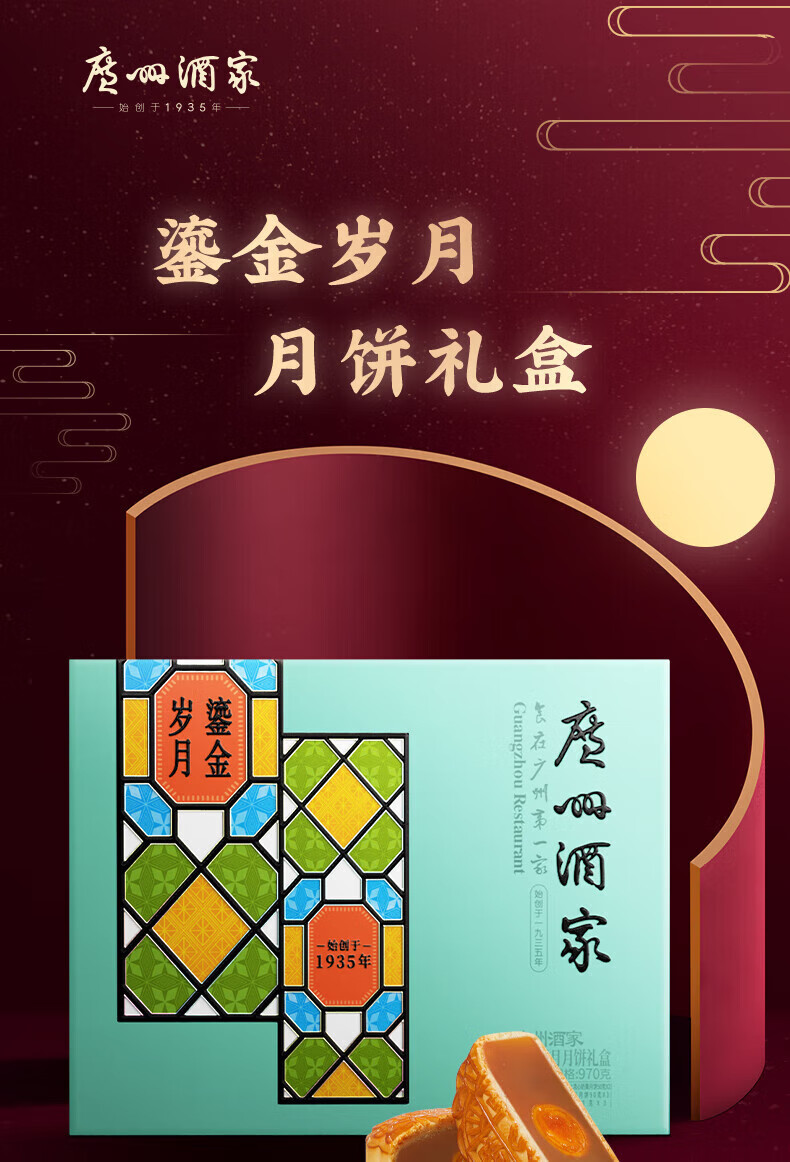 (特)广州酒家鎏金岁月广州酒家中秋月饼礼盒 中华老字号 广式月饼 企业团购 员工福利 送礼 鎏金岁月月饼礼盒970g