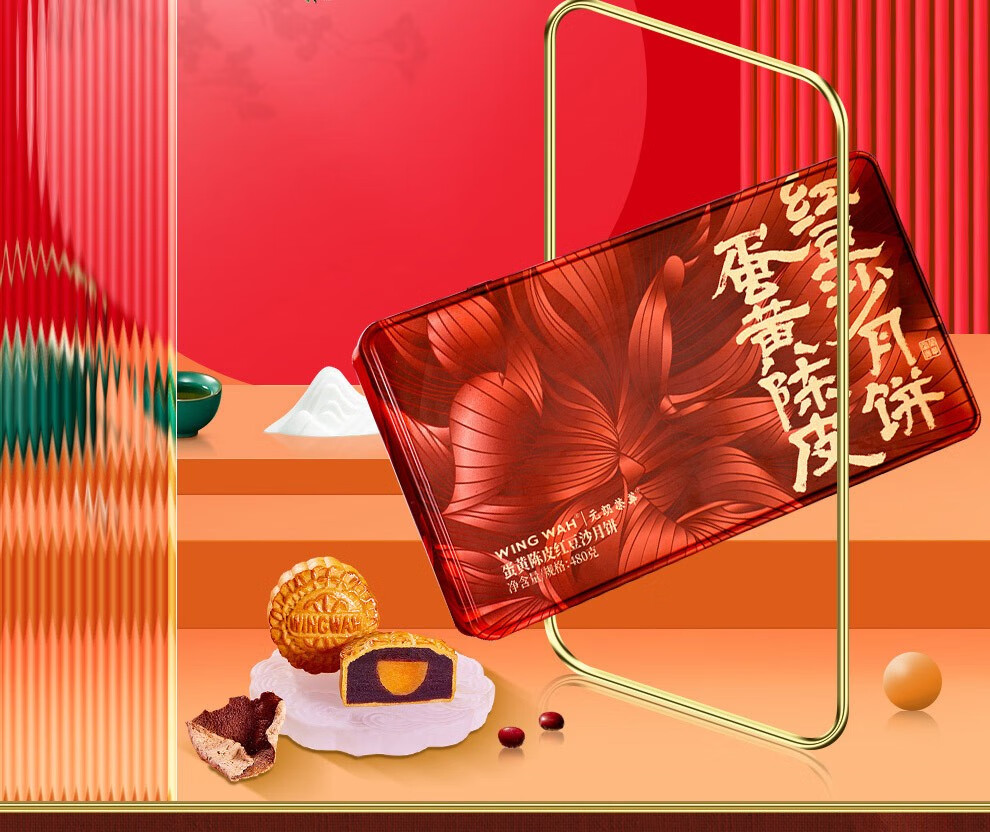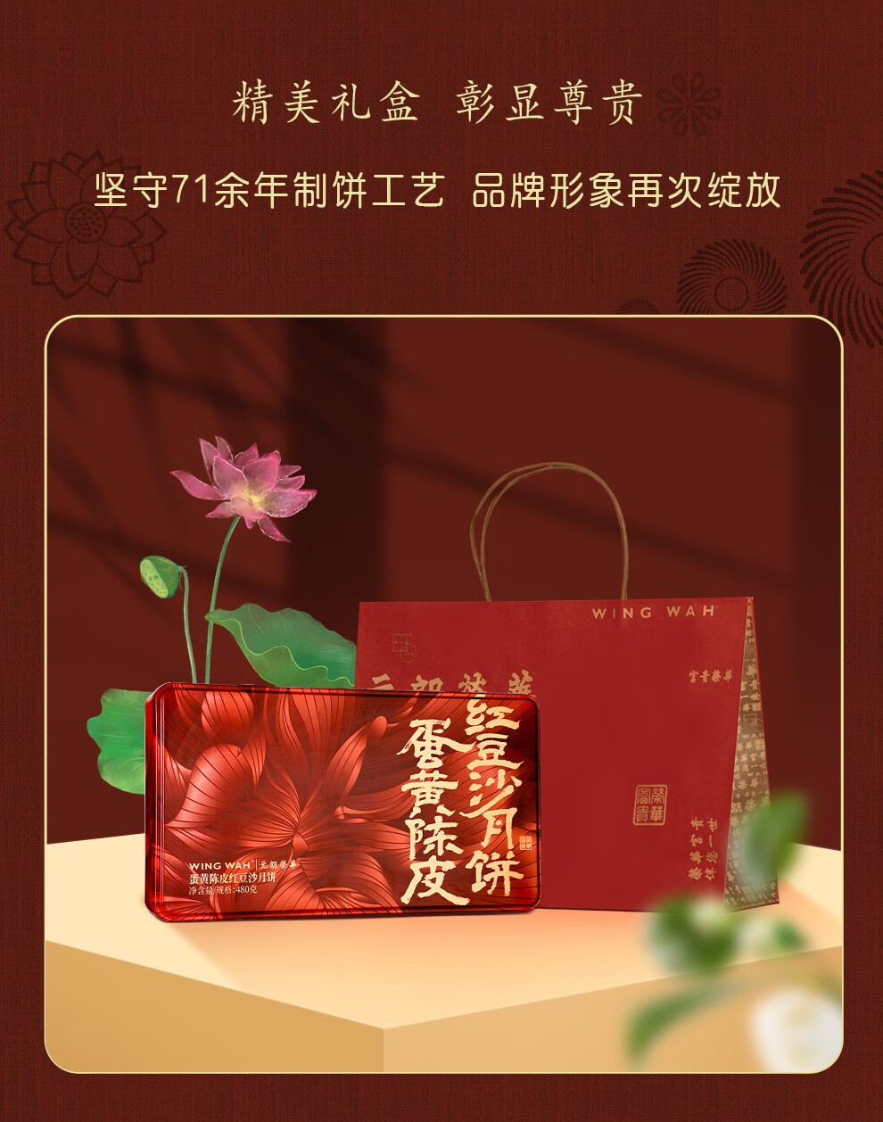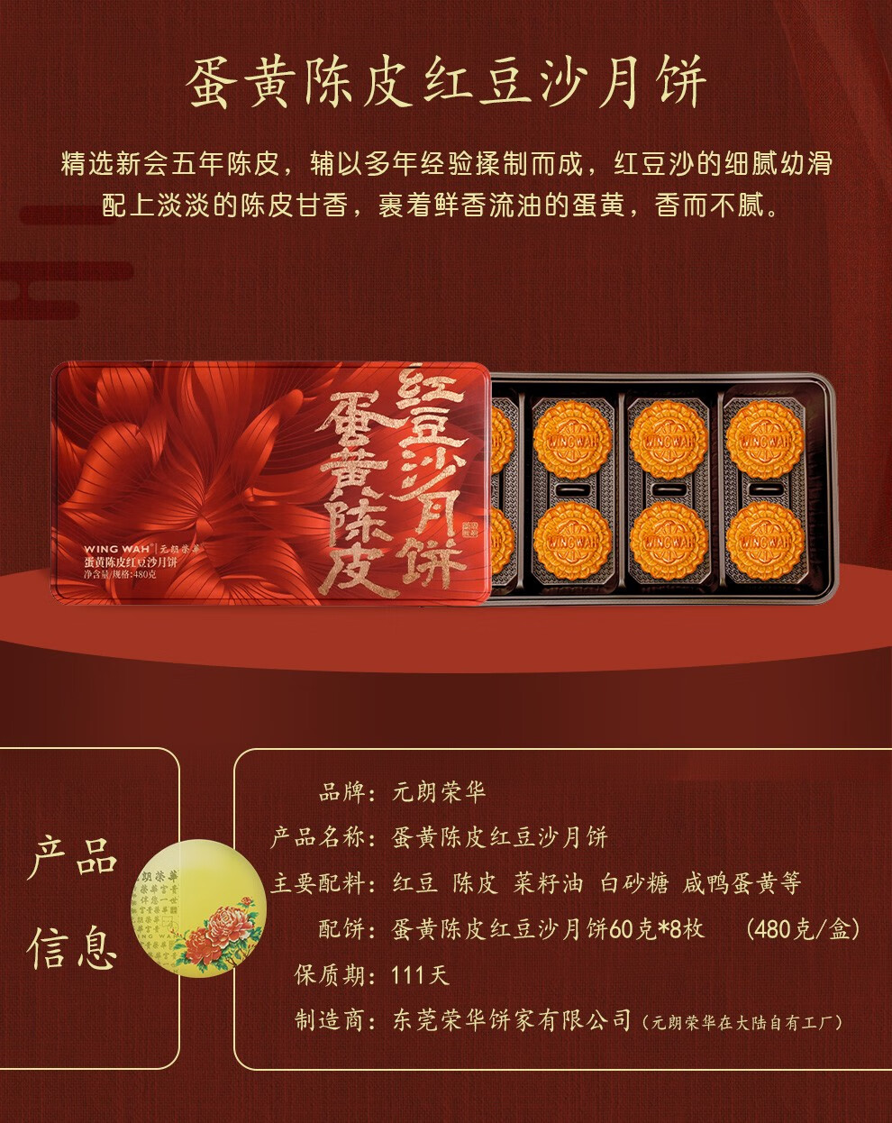 (特)元朗荣华元朗荣华蛋黄陈皮红豆沙480克中秋礼盒装