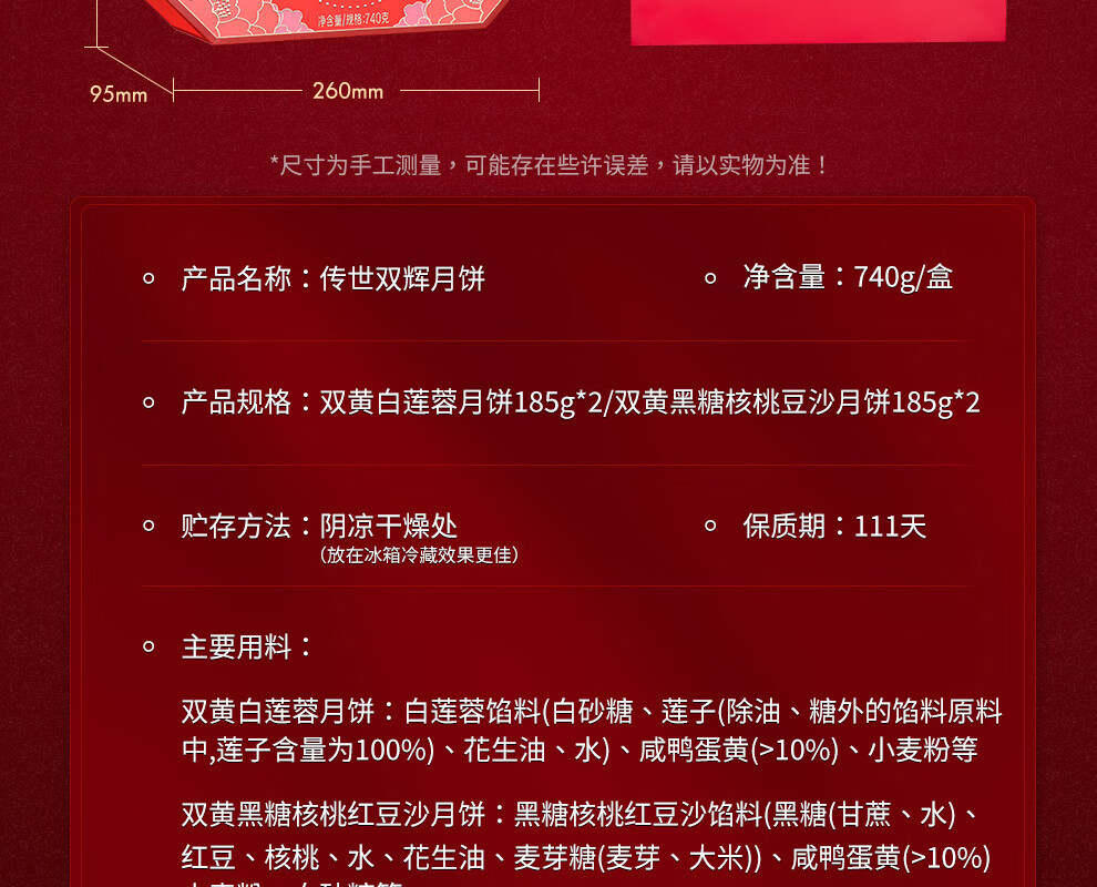 (特)元朗荣华传世双辉月饼礼盒740g广式中秋月饼礼盒企业送礼员工福利月饼礼盒