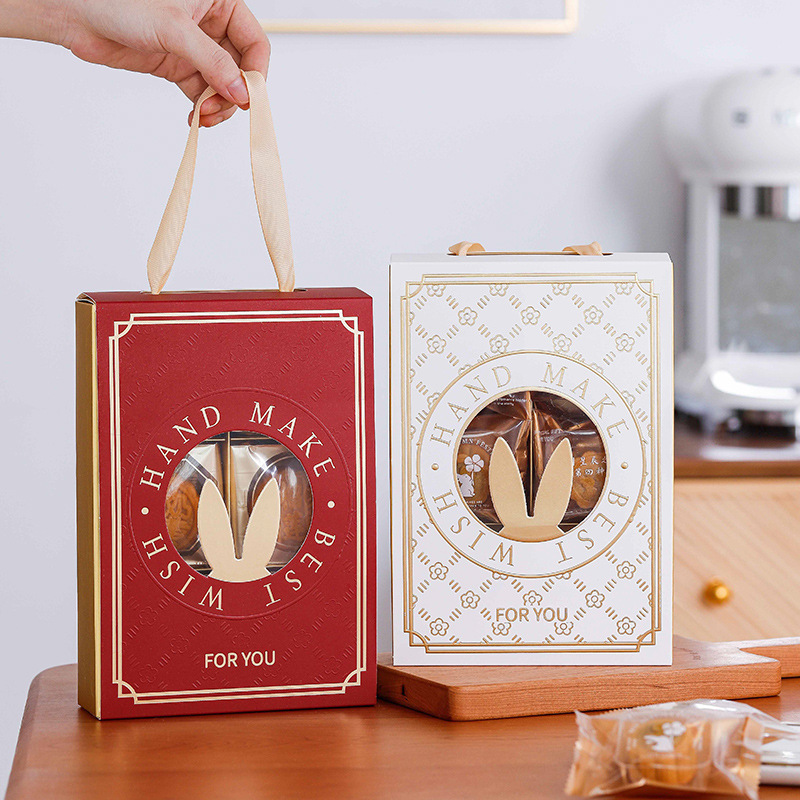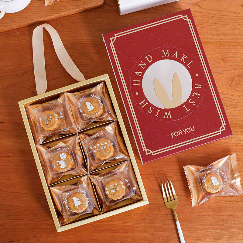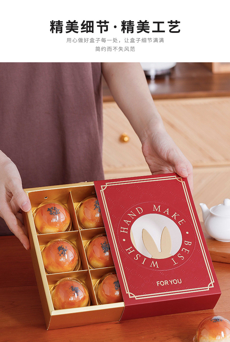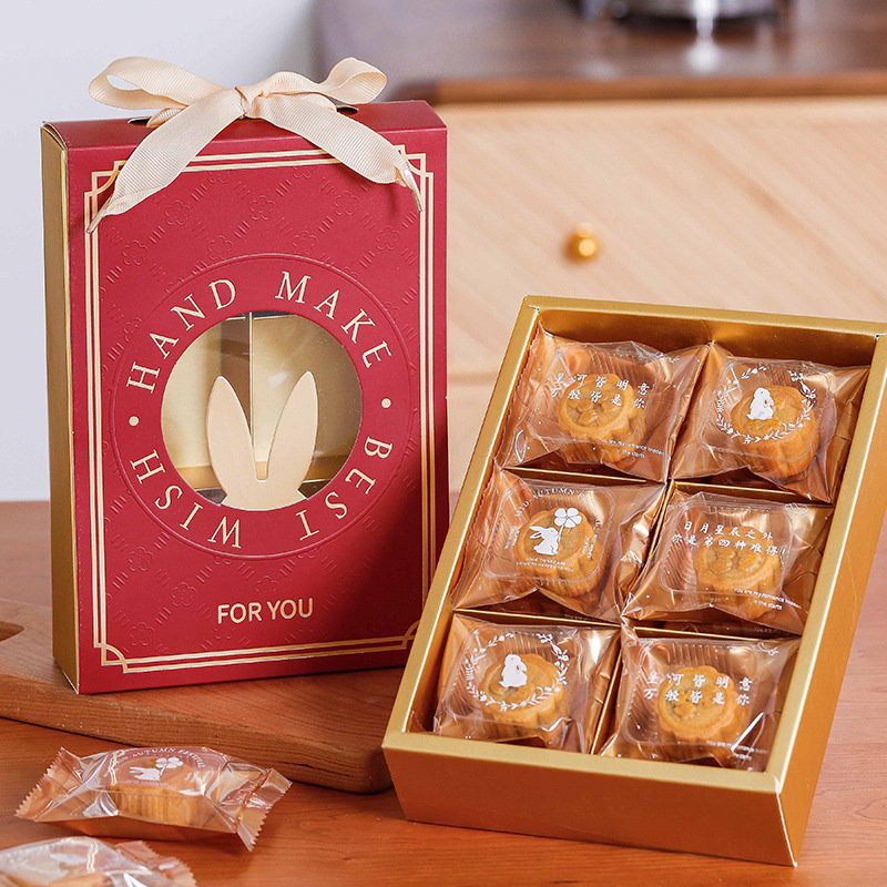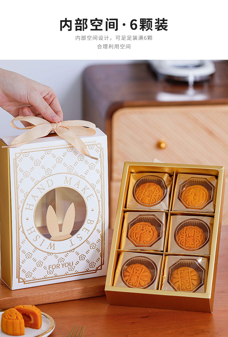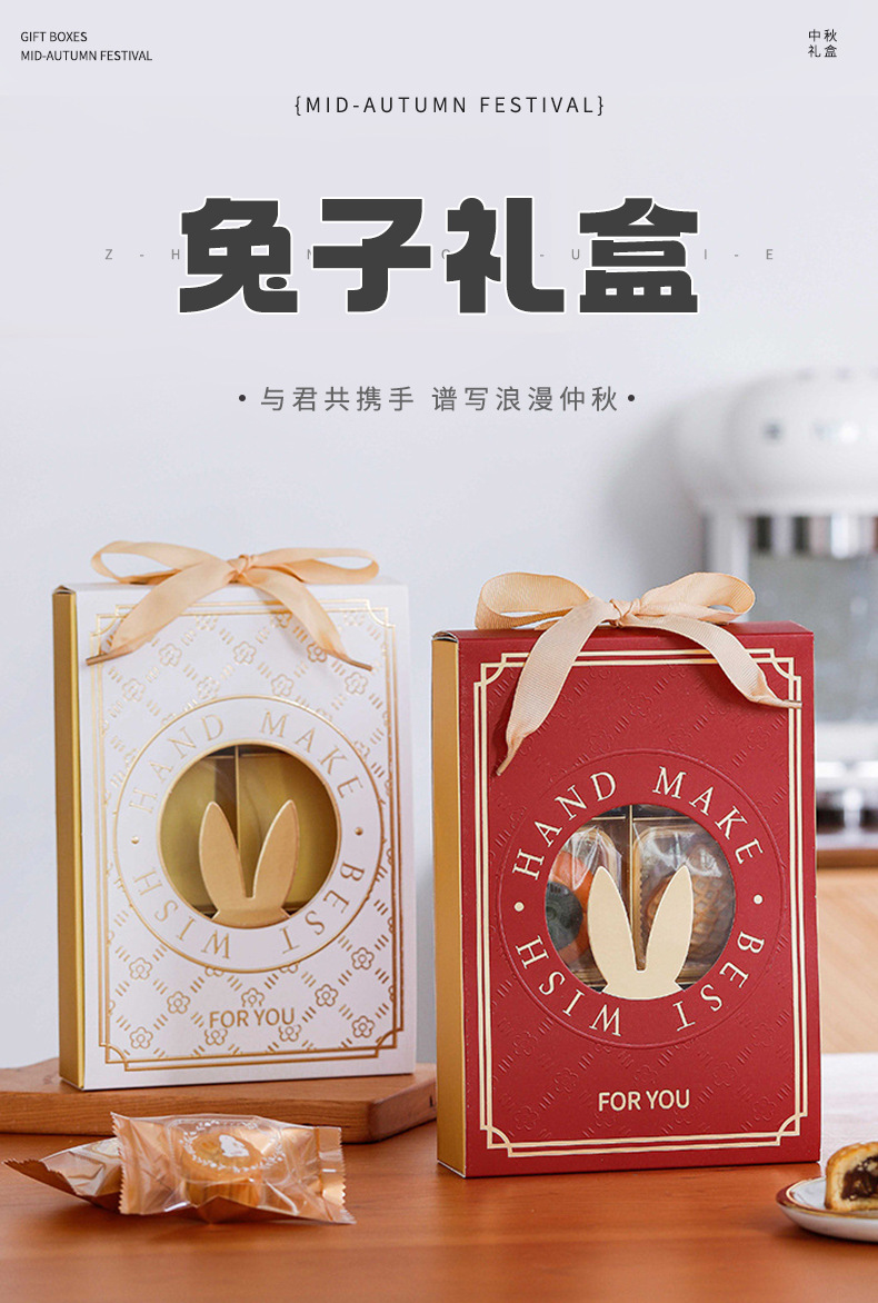 6粒月饼包装盒烘焙中秋兔子月饼礼盒打包子手工烘焙包装盒子六格