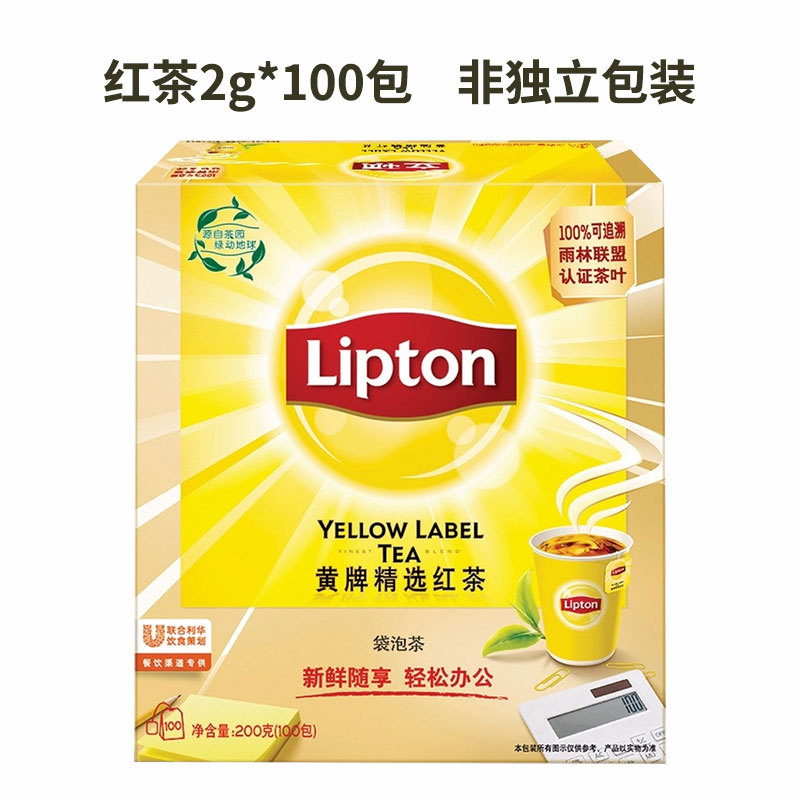 (特)立顿红茶黄牌精选红茶100包200g办公餐饮奶茶用茶袋泡茶立顿茶包立顿茶包