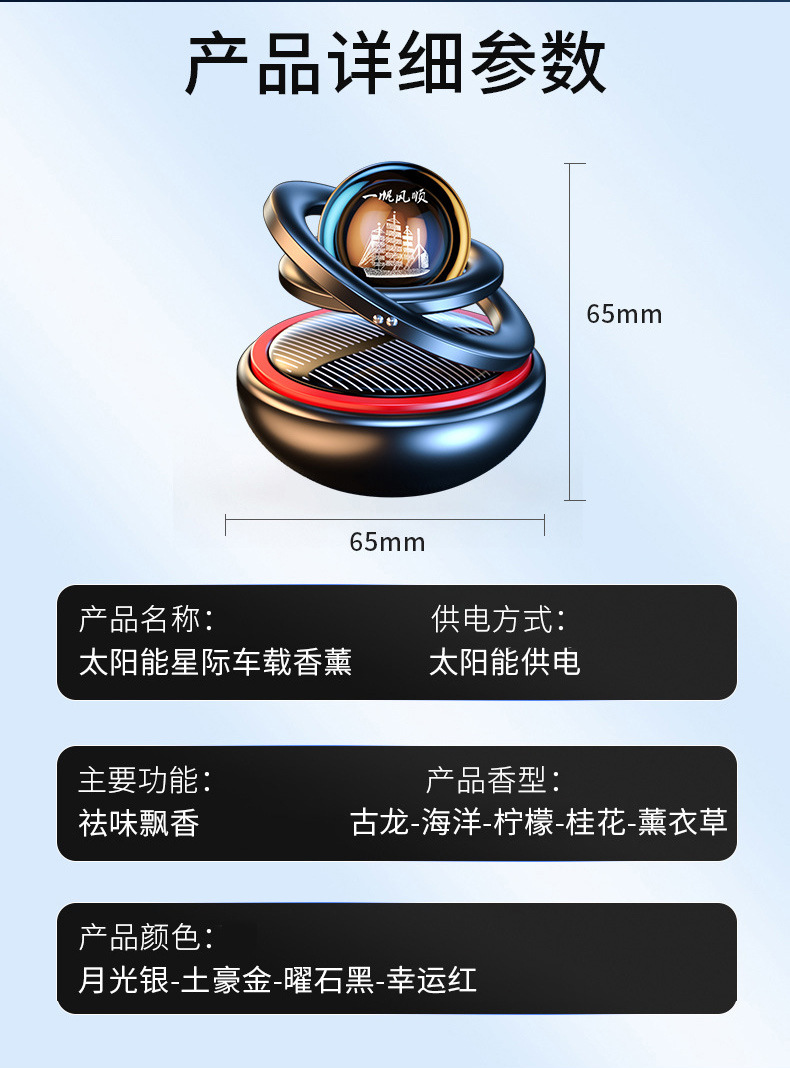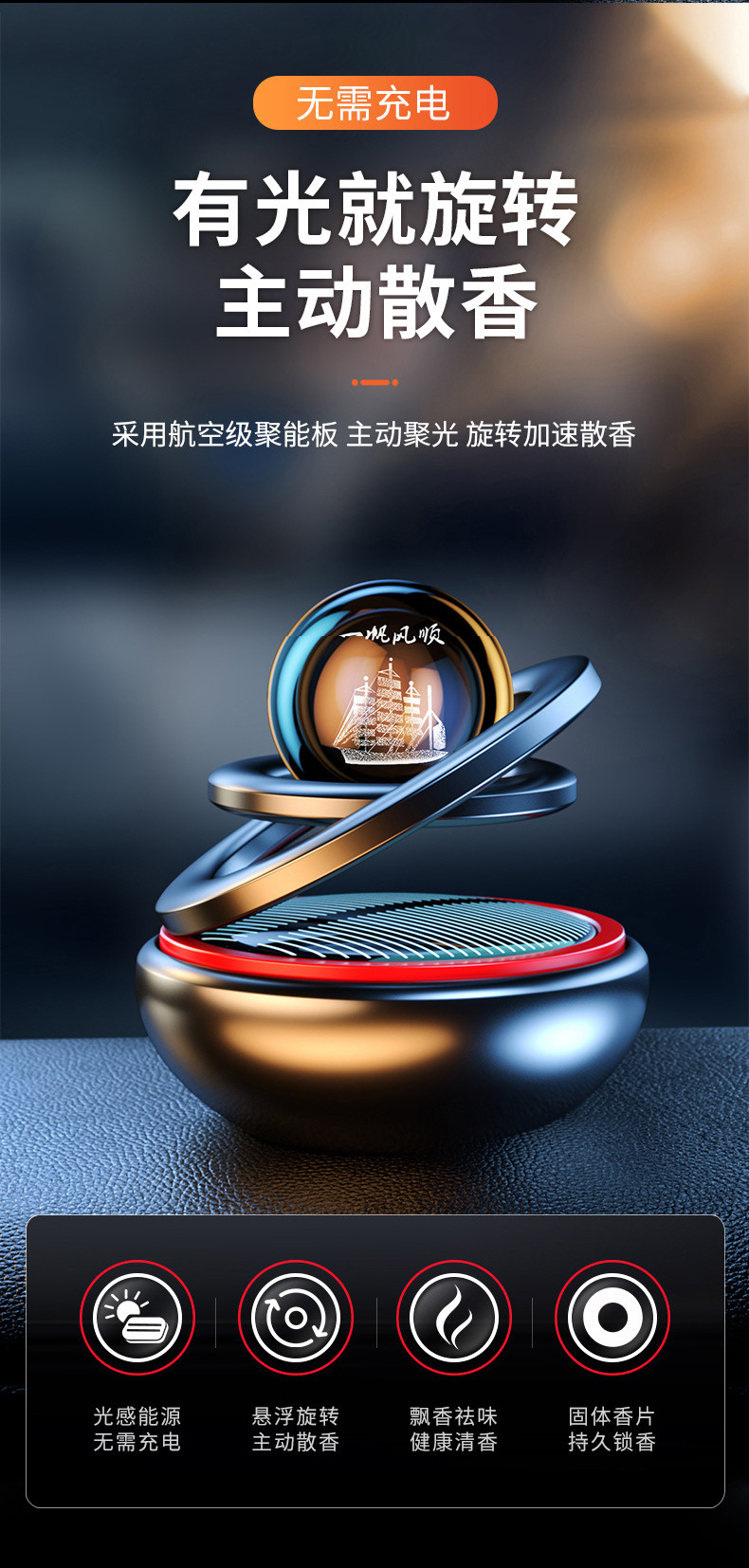 太阳能旋转车载香水铝合金星际悬浮汽车香水摆件车载香薰