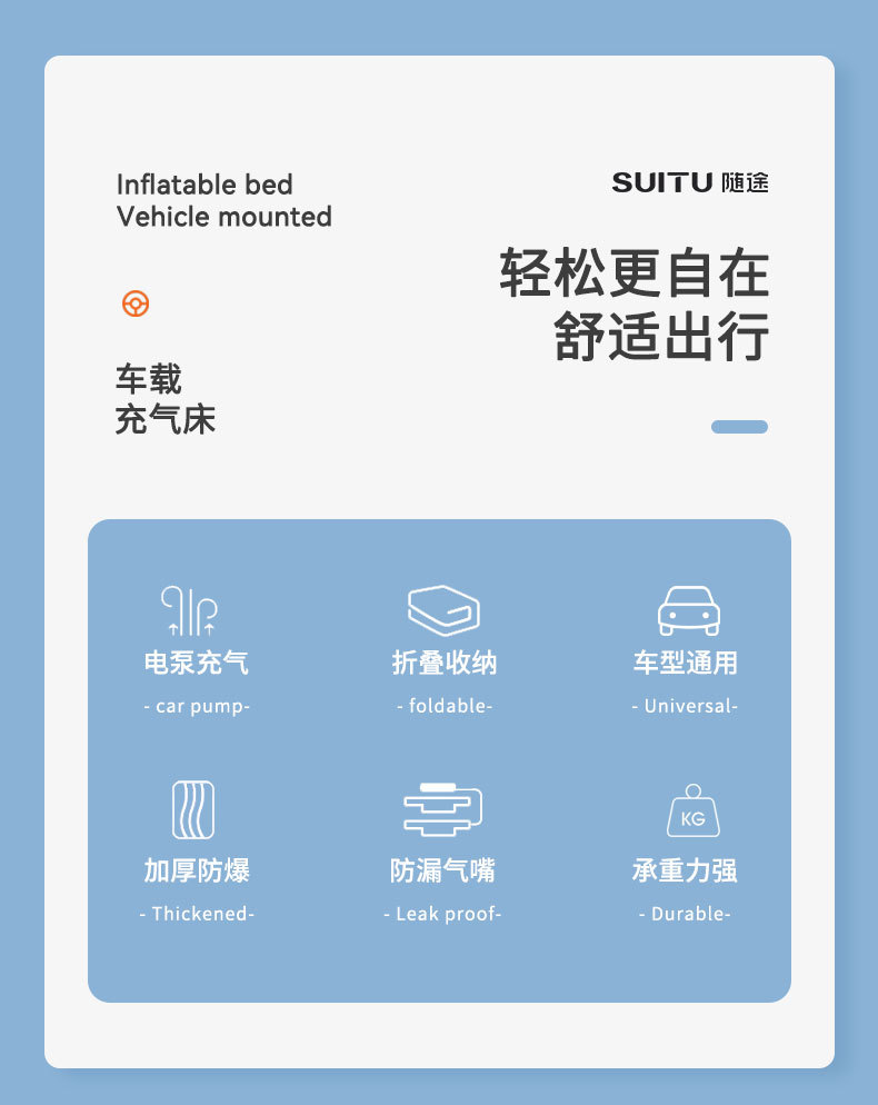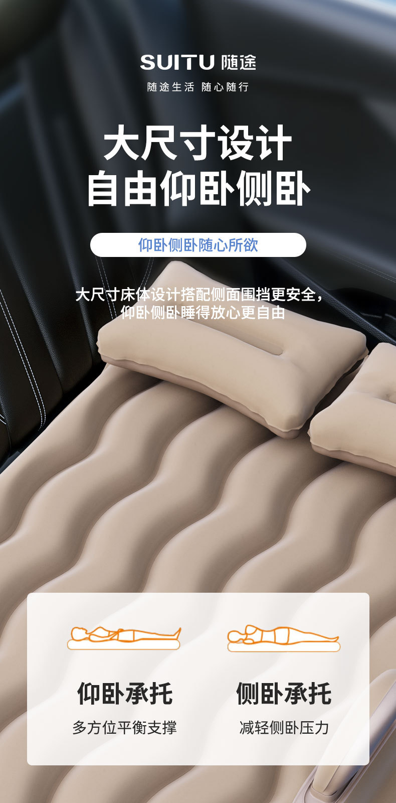 汽车用品折叠车载充气床 PVC植绒汽车充气床垫 SUV车内旅行充气床