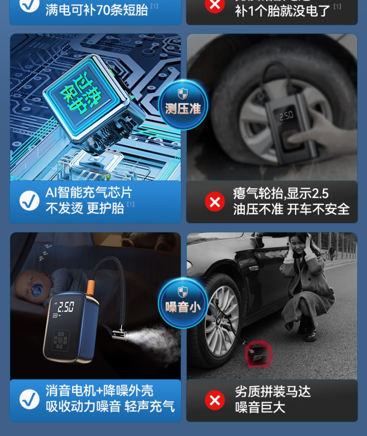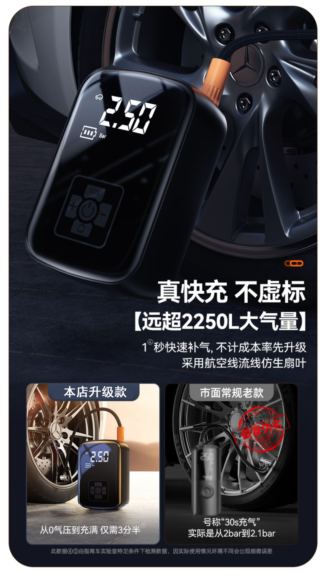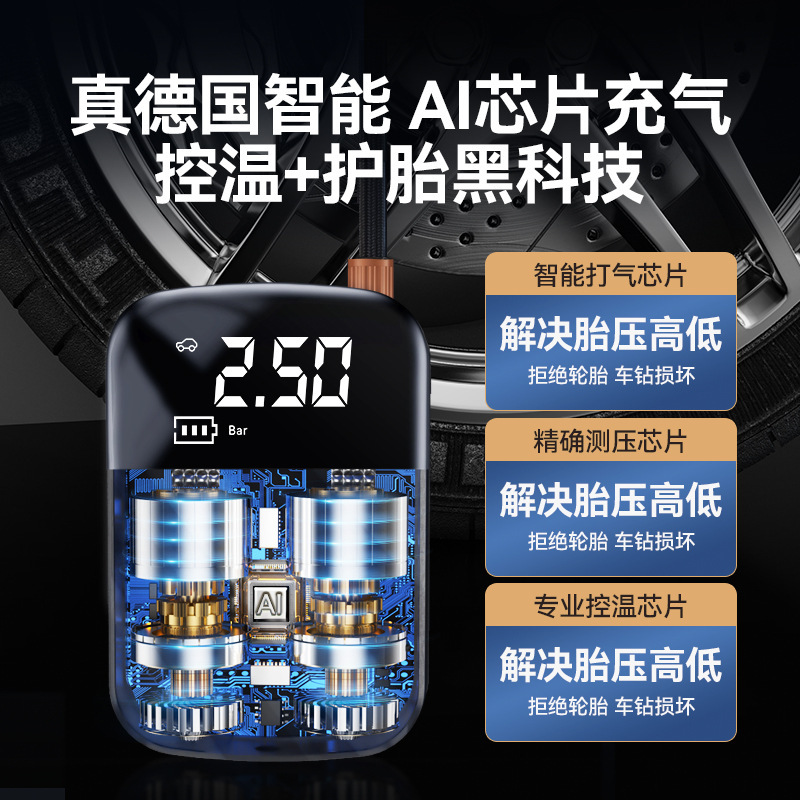 车载无线充气泵 汽车便携式打气泵 电动小轿车用轮胎打气筒冲充气