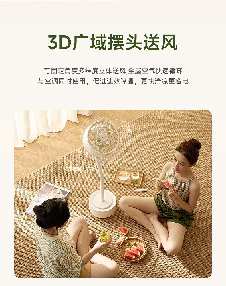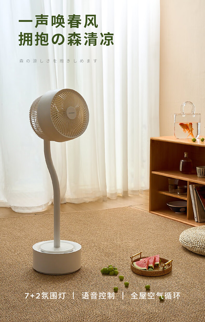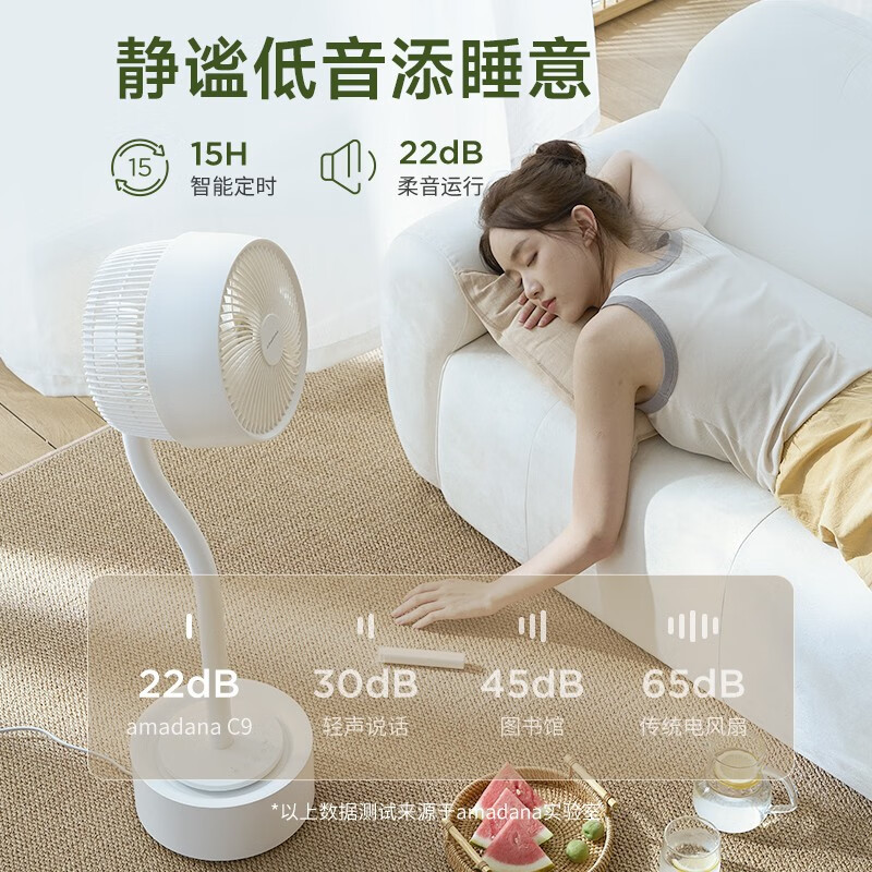 amadana日本空气循环扇电风扇家用变频语音智控风扇3D摇头落地扇直流涡轮扇静音大风立式轻音扇C9