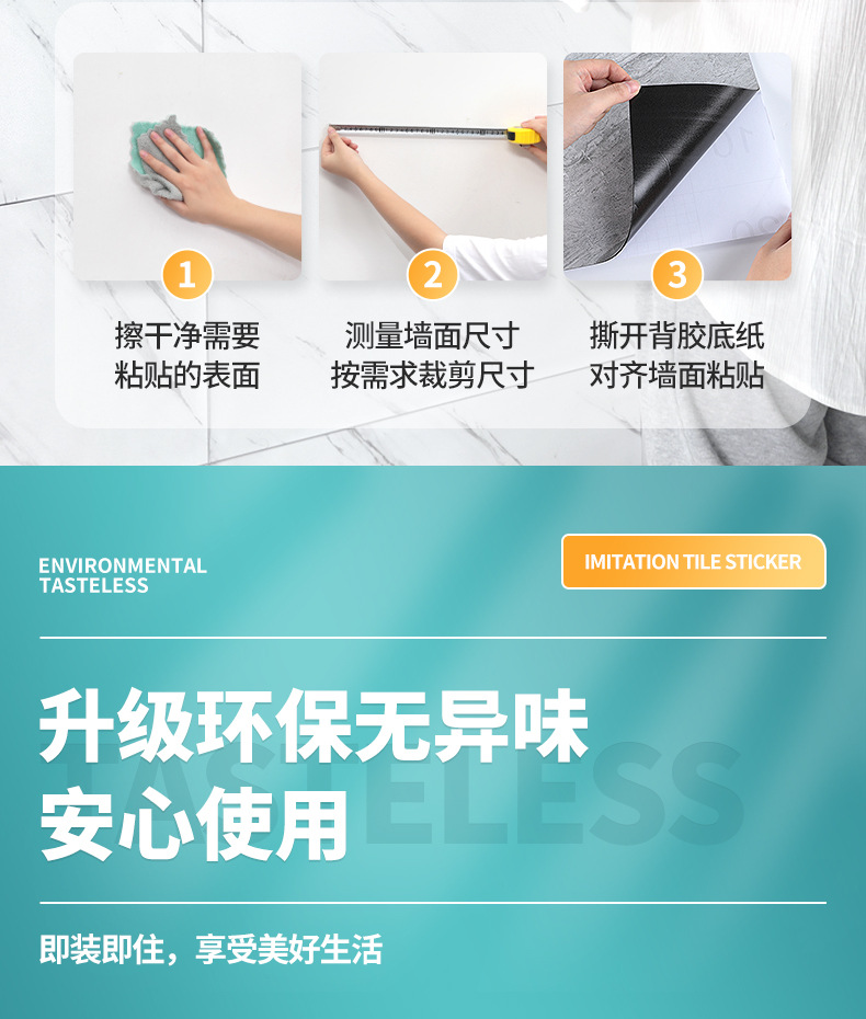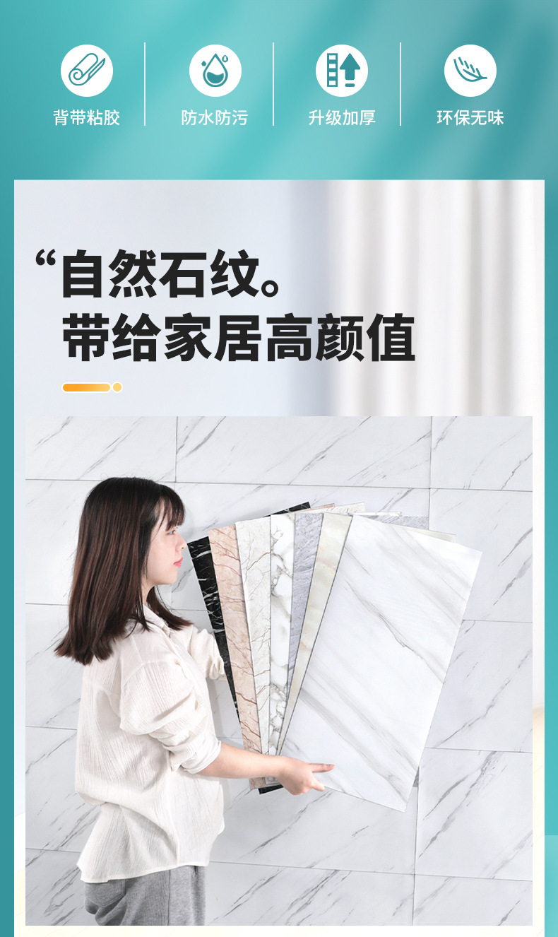 墙纸自粘仿瓷砖大理石纹墙贴卫生间防水防潮墙面壁纸翻新贴纸