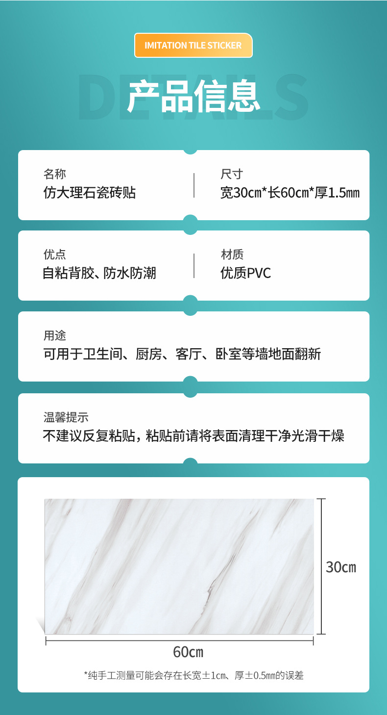 - 卡拉白/流光白/摩登白/莫奈灰/水泥灰/星光灰/云母白/雅青灰30cm*60cm