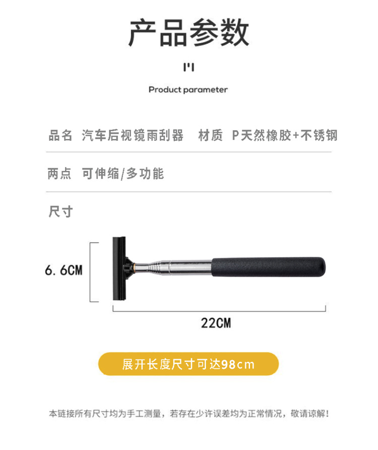 汽车后视镜刮水器车载雨刮神器反光镜防雾除水可伸缩不锈钢雨刷