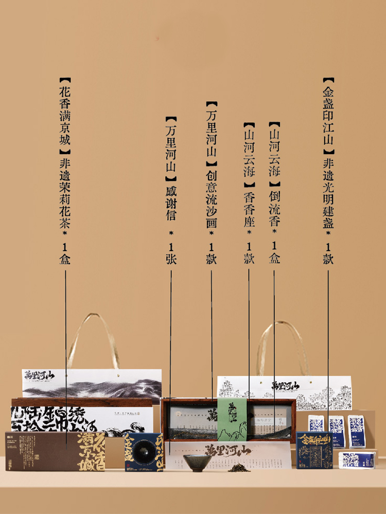 (特)【非遗茉莉花茶】万里河山流沙画创意礼盒 高档商务礼品搭配建盏