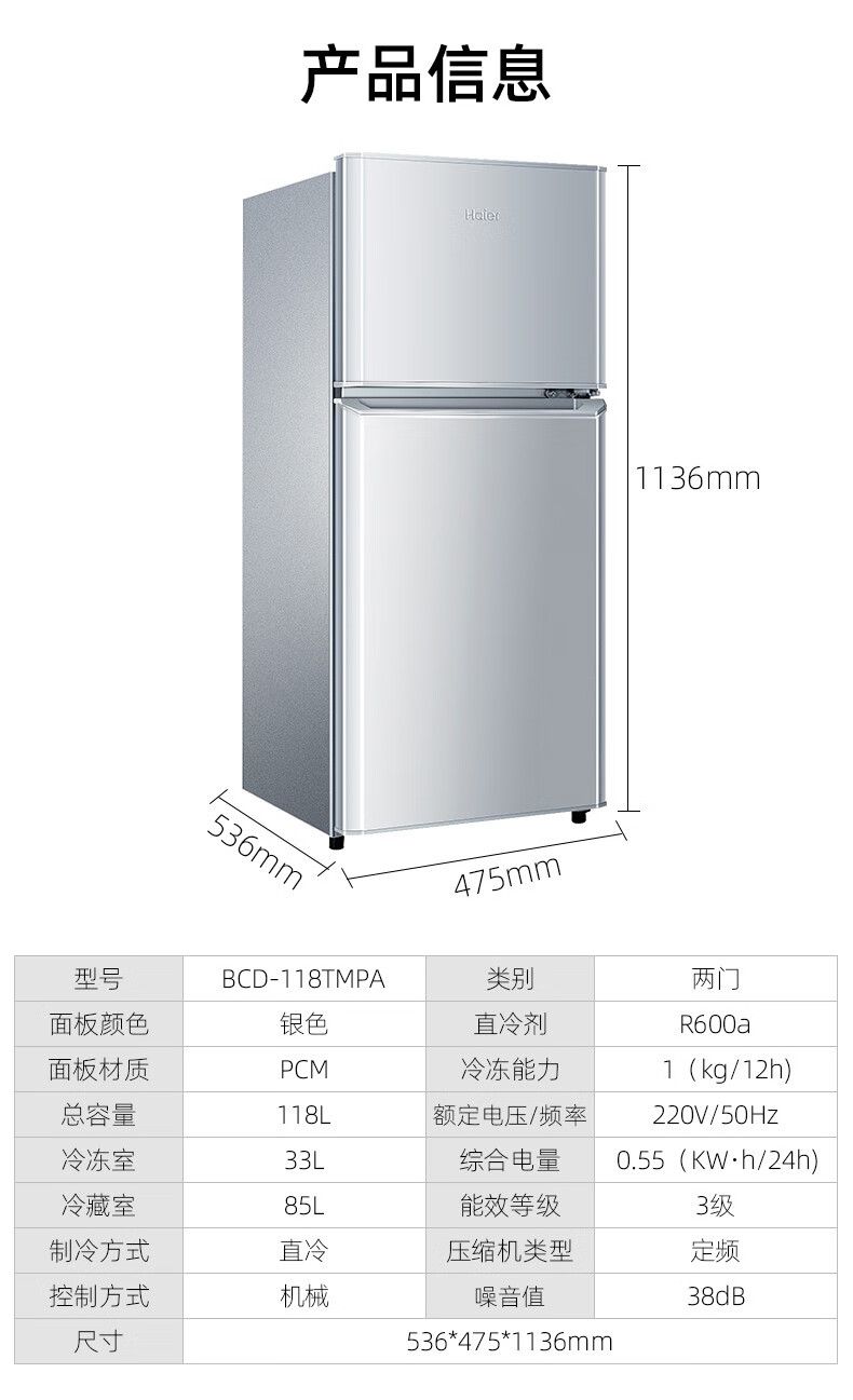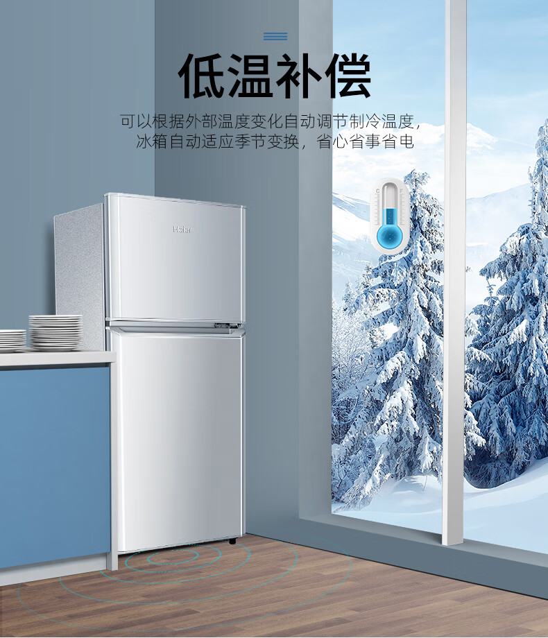(特)海尔(Haier)BCD-118TMPA冰箱 118升小型两门迷你双门冰箱宿舍家用租房小巧不占地节能省电冷藏冷冻电冰箱