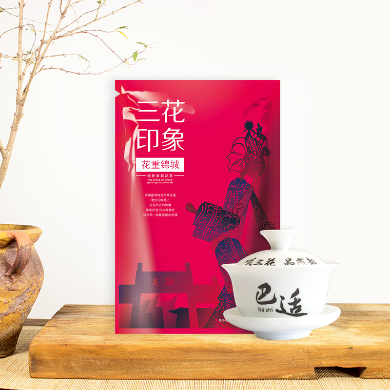 (特)三花茶叶印象系列锦城露芽蟹目香珠花重锦城印象明前成都盖碗花茶