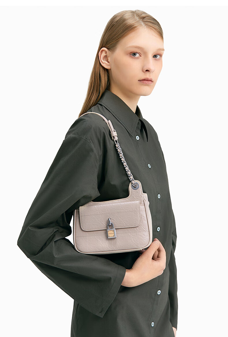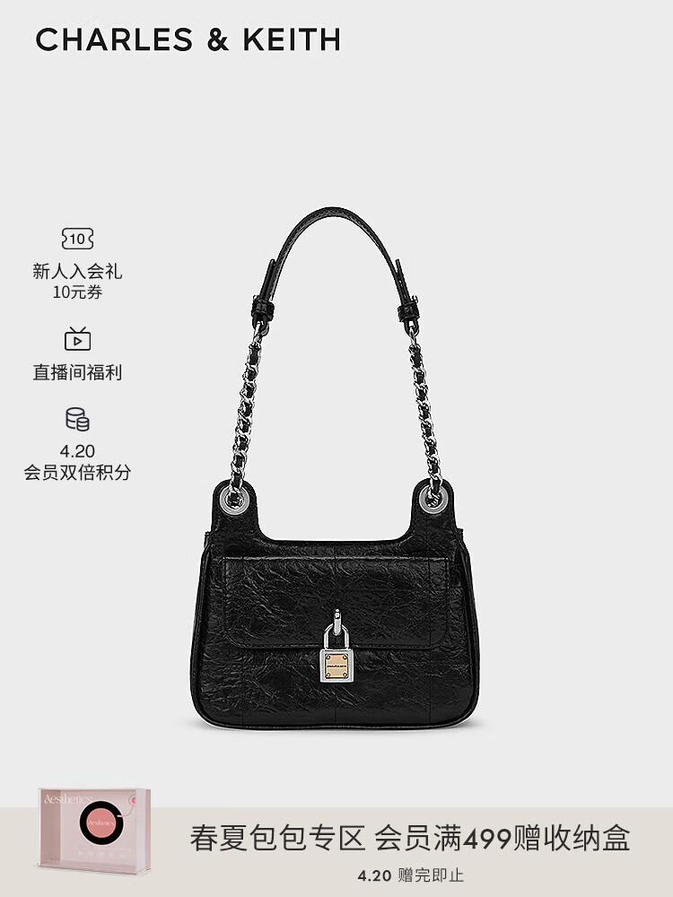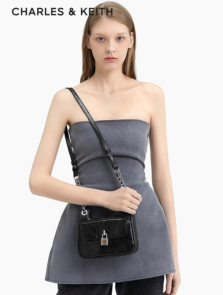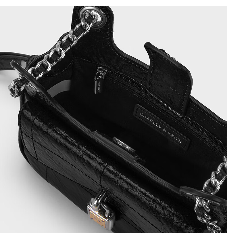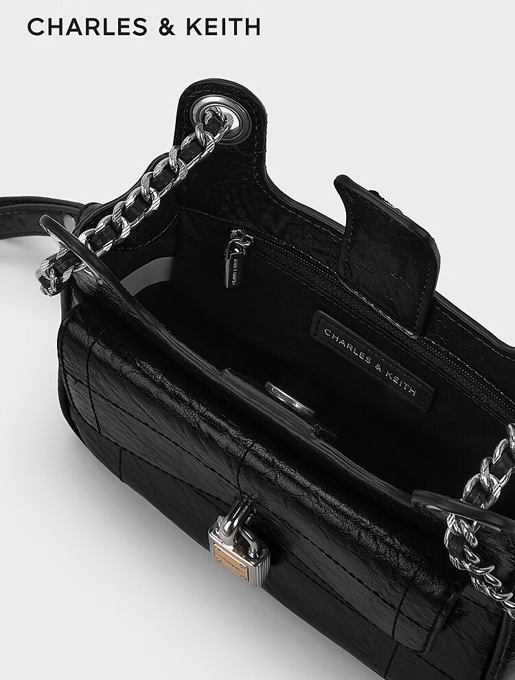 (特)CHARLES&KEITH24春新品复古挂锁扣绗缝手提单肩小方包包女包女士CK2-20671608