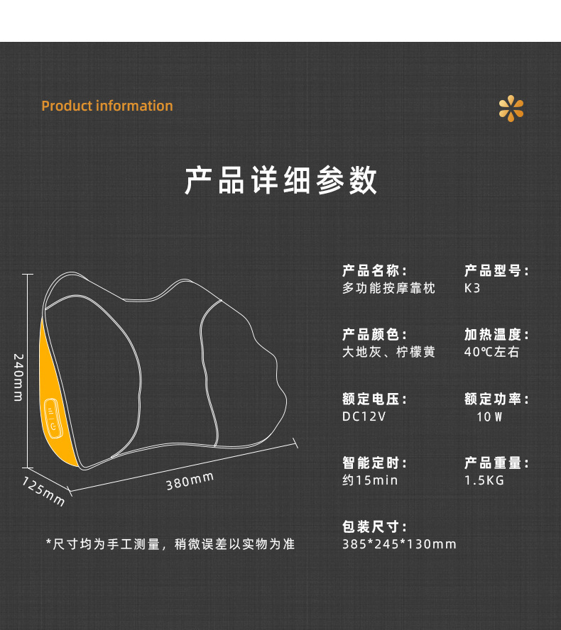 腰部按摩器背部腰椎车载颈部按摩枕按摩靠枕颈椎按摩仪腰颈两用K3