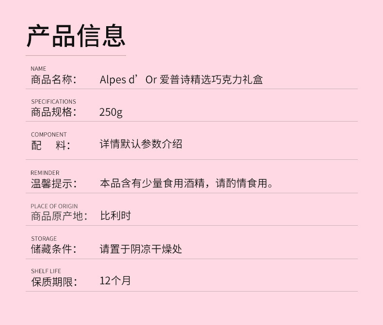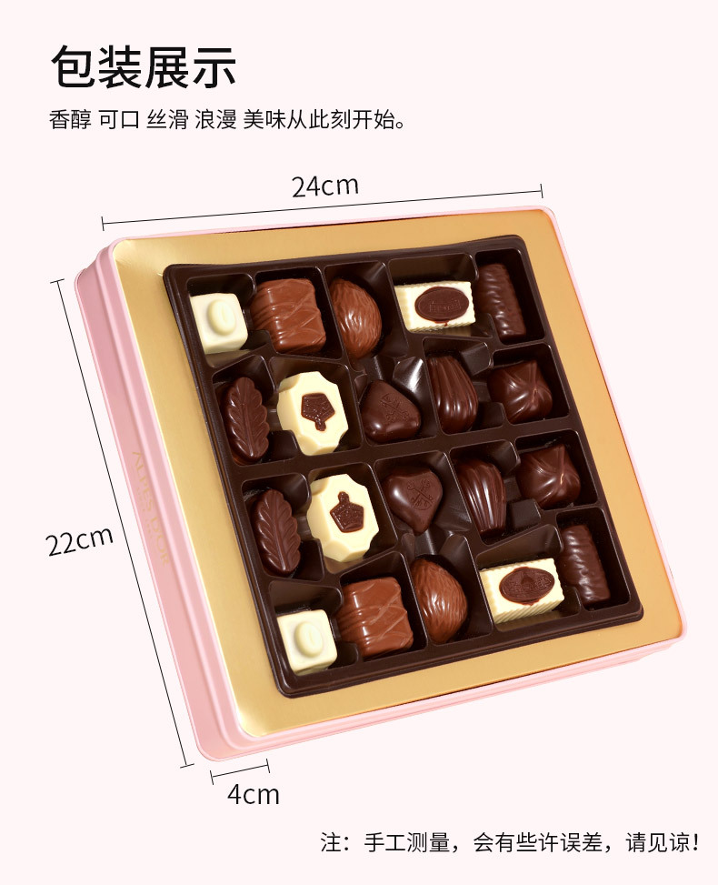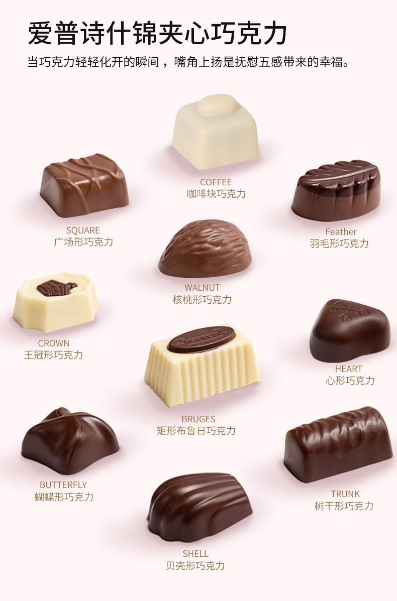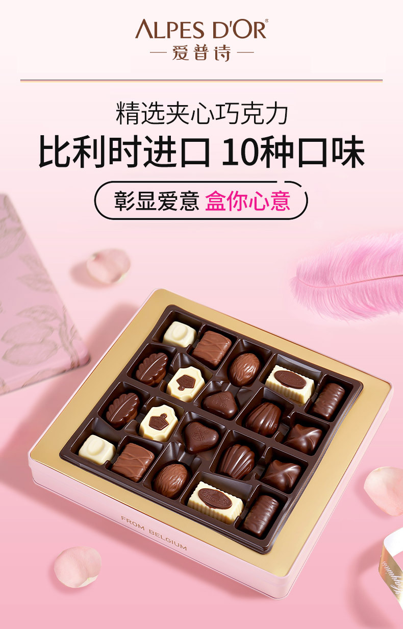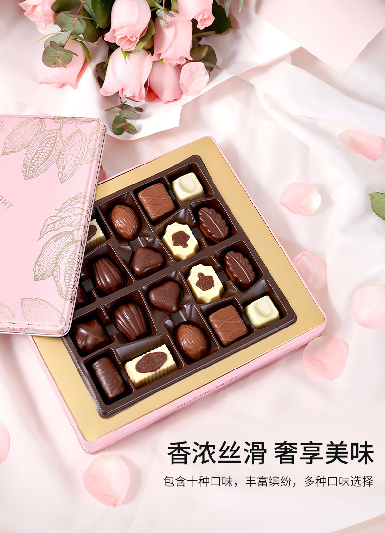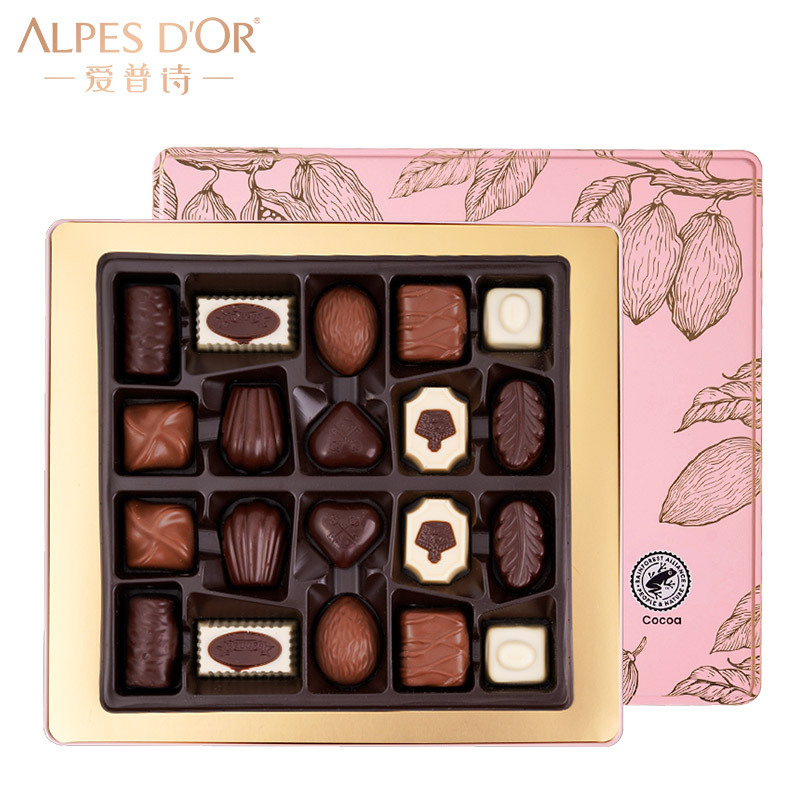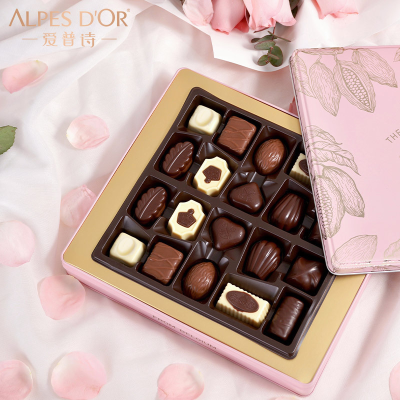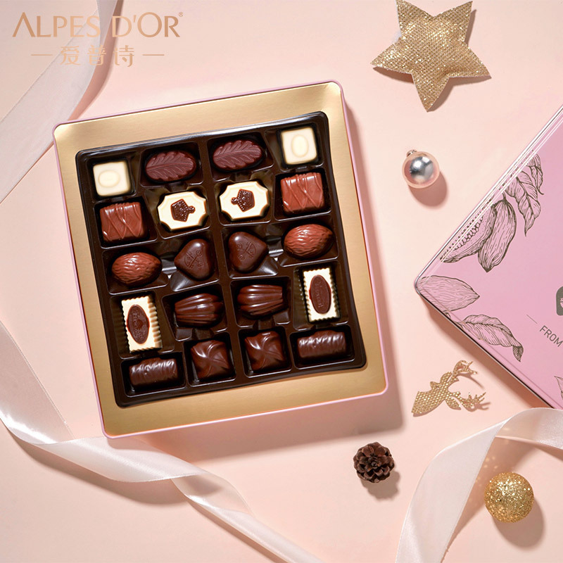 爱普诗夹心糖果250g盒装休闲零食年货礼盒送礼巧克力粉色礼盒