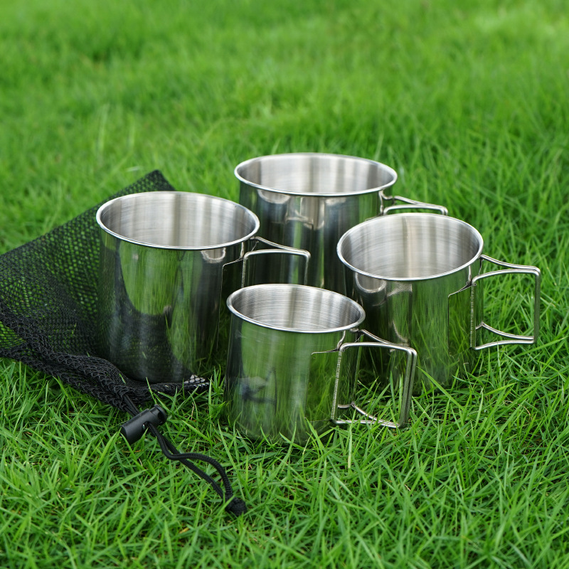 (特)户外304不锈钢折叠杯便携套碗登山野营烧烤便携饭碗旅行4件套杯碗
