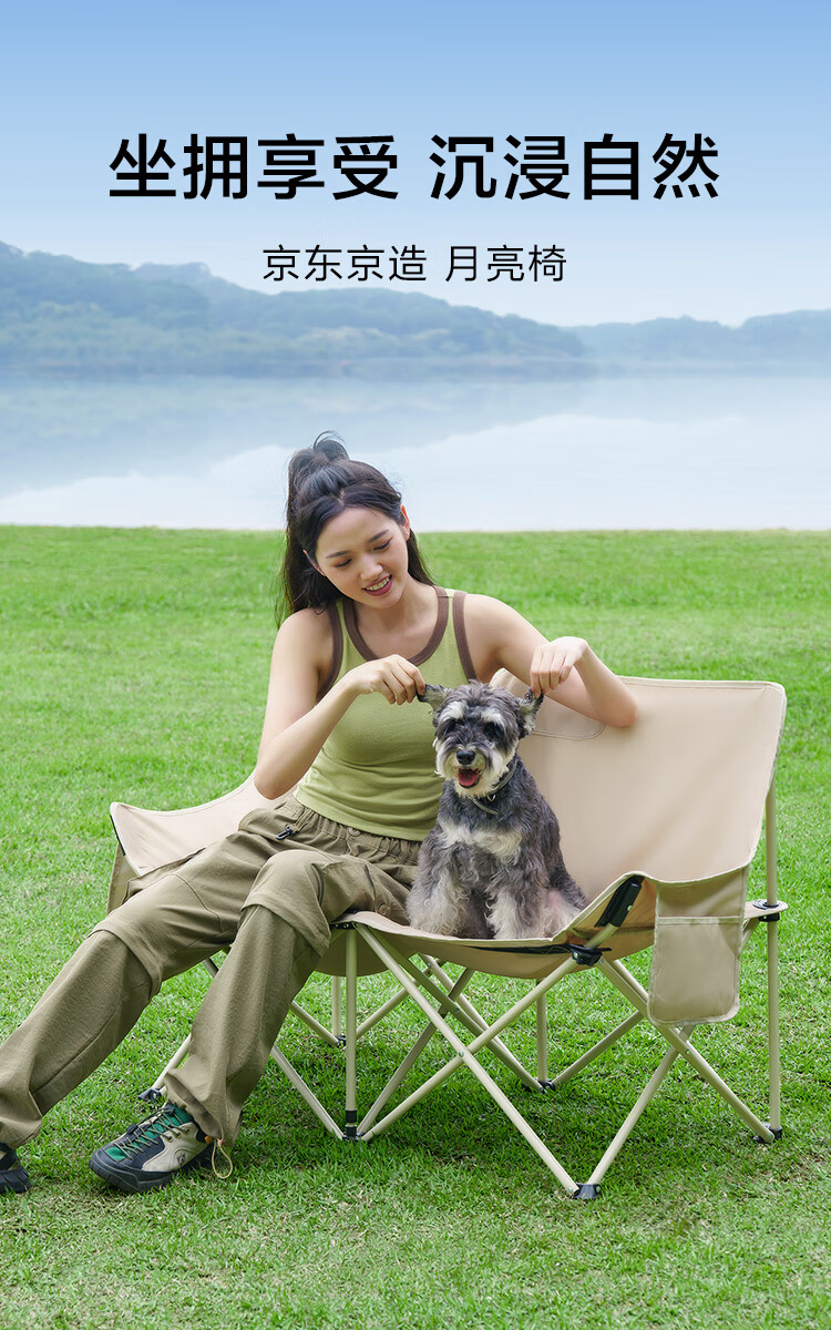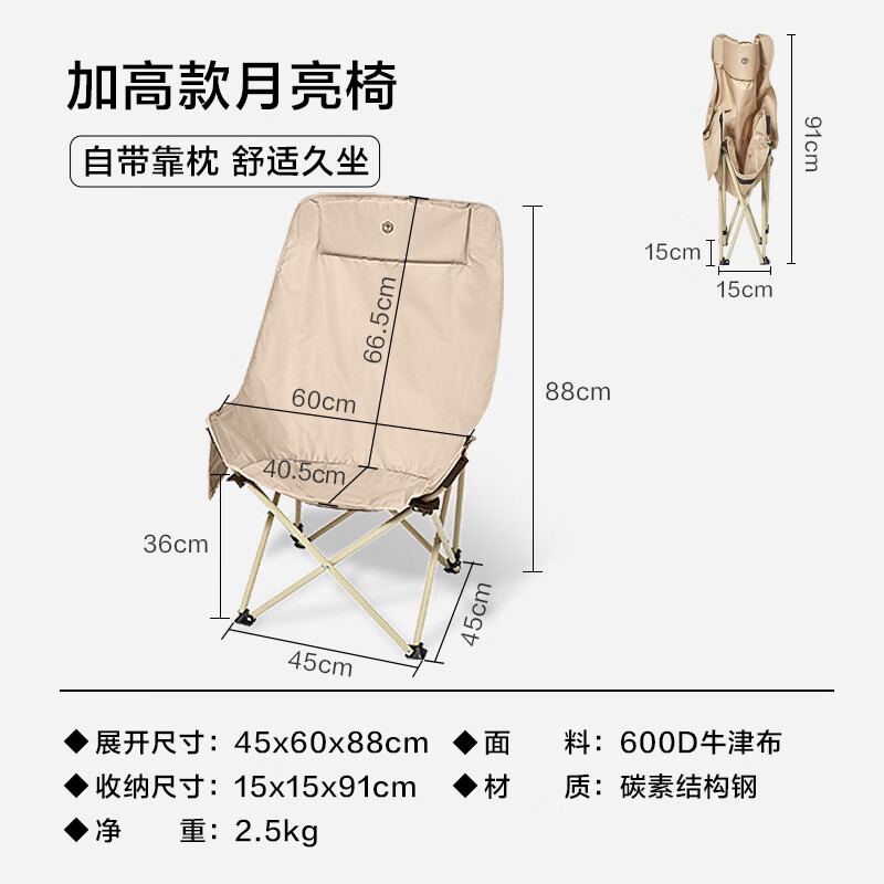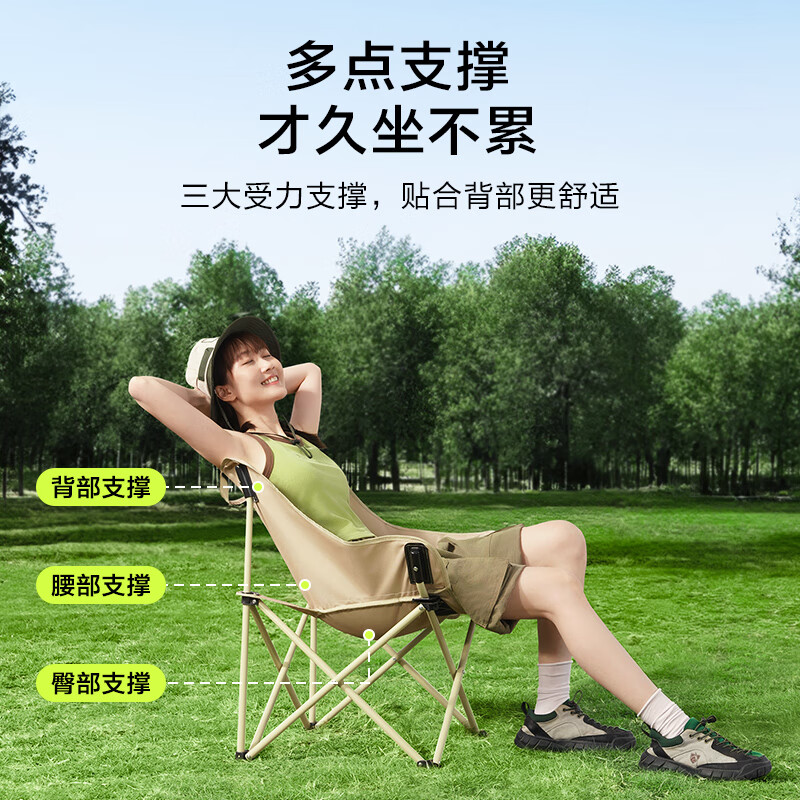 (特)京东京造户外折叠椅便携折叠月亮椅躺椅露营椅子折叠凳钓鱼 高背月亮椅