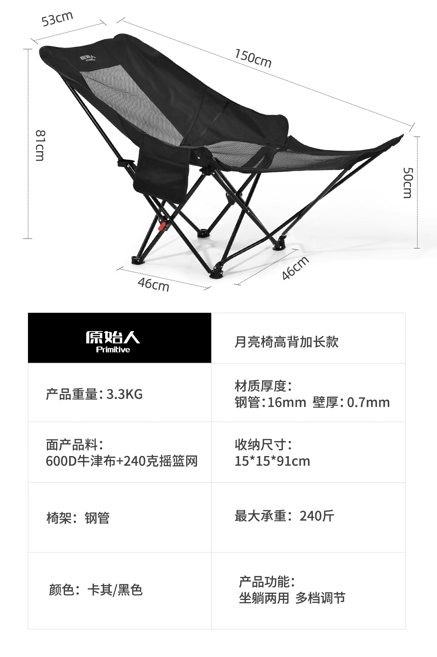 (特)原始人户外折叠躺椅便携式超轻钓鱼椅子沙滩露营导演椅靠背凳子
