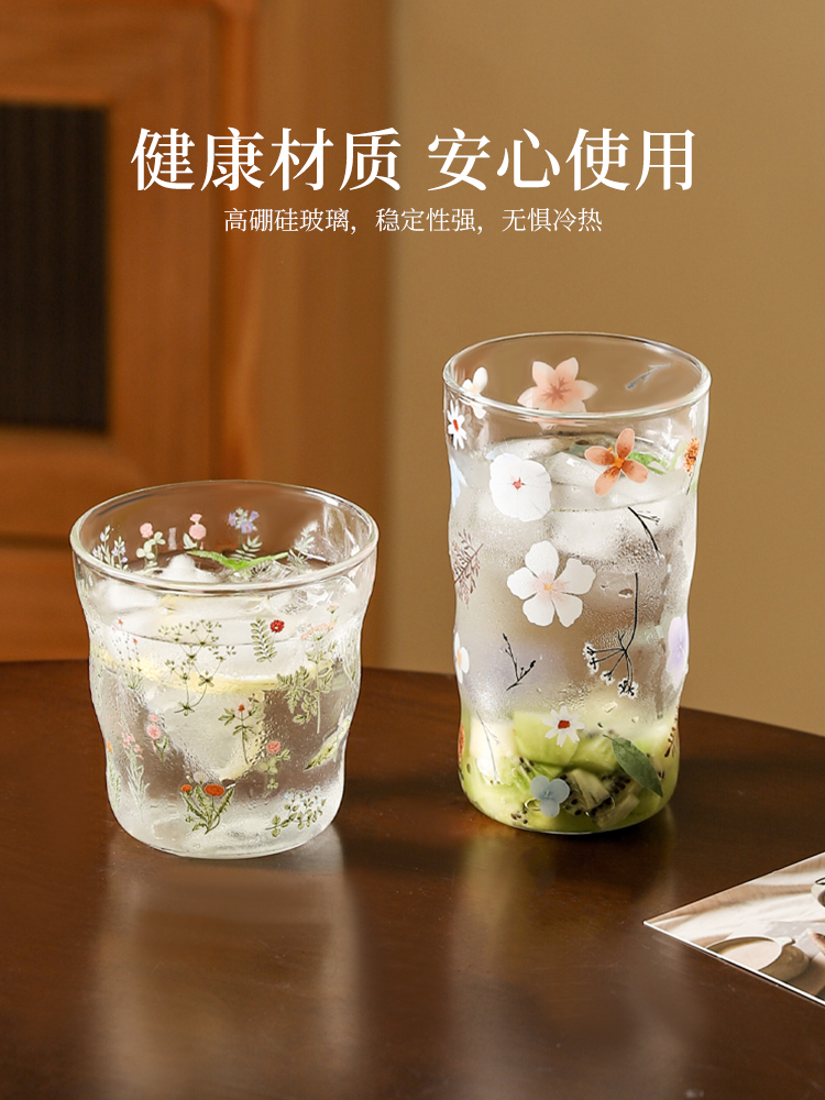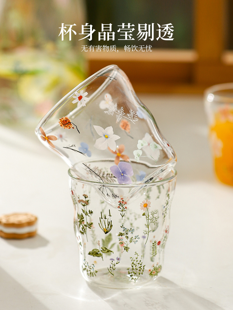 (特)川岛屋小清新玻璃杯子女新款2024高颜值家用喝水杯果汁冷饮牛奶杯(指定链接产品,拍前请咨询客服)
