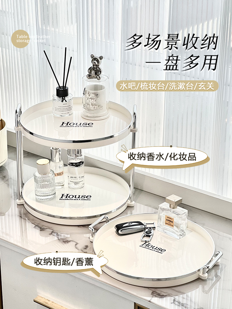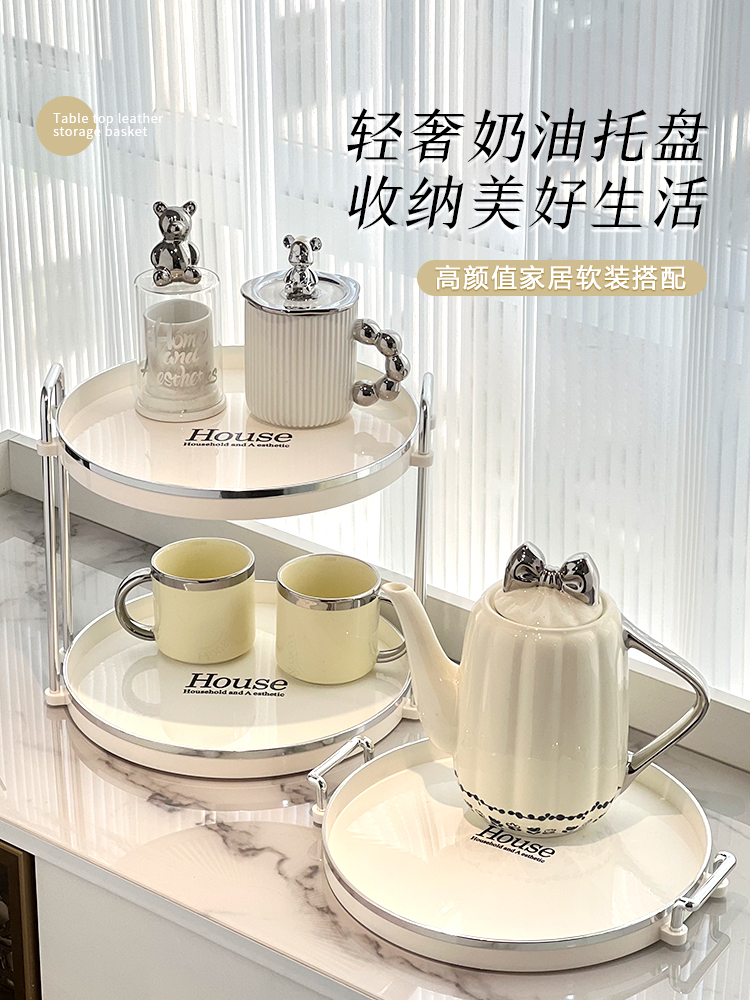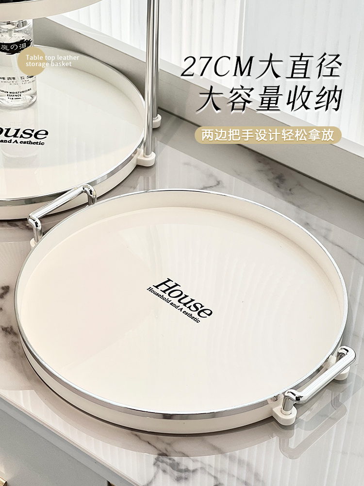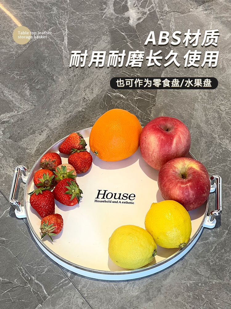 圆形收纳托盘轻奢高级家用客厅2024新款水果盘塑料放水杯杯子茶盘