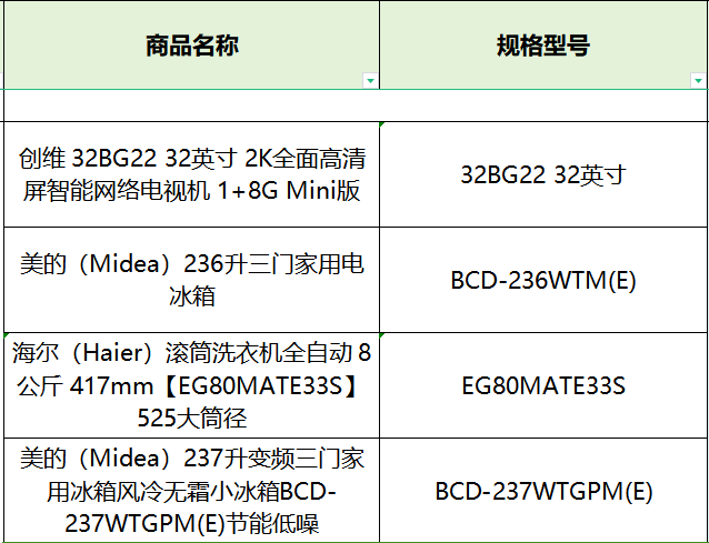 创维 32BG22 32英寸 2K全面高清屏智能网络电视机 1+8G Mini版 32BG22 32英寸 美的(Midea)236升三门家用电冰箱 BCD-236WTM(E) 海尔(Haier)滚筒洗衣机全自动 8公斤 417mm【EG80MATE33S】 525大筒径 EG80MATE33S 美的(Midea)237升变频三门家用冰箱风冷无霜小冰箱BCD-237WTGPM(E)节能低噪 BCD-237WTGPM(E)