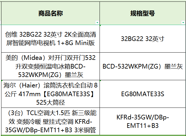 创维 32BG22 32英寸 2K全面高清屏智能网络电视机 1+8G Mini版 32BG22 32英寸 美的(Midea)对开门双开门532升双变频恒温电冰箱BCD-532WKPM(ZG)墨兰灰 BCD-532WKPM(ZG)墨兰灰 海尔(Haier)滚筒洗衣机全自动 8公斤 417mm【EG80MATE33S】 525大筒径 EG80MATE33S (3台)TCL空调大1.5匹 新三级能效 变频冷暖 壁挂式空调 KFRd-35GW/DBp-EMT11+B3 3米铜管 KFRd-35GW/DBp-EMT11+B3