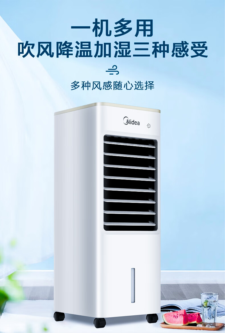 美的(Midea)空调扇制冷冷风机冷风扇强力冷气机家用加水冰晶制冷气扇客厅卧室节能省电加湿降温立式单冷蒸发式 AAB10A 白色