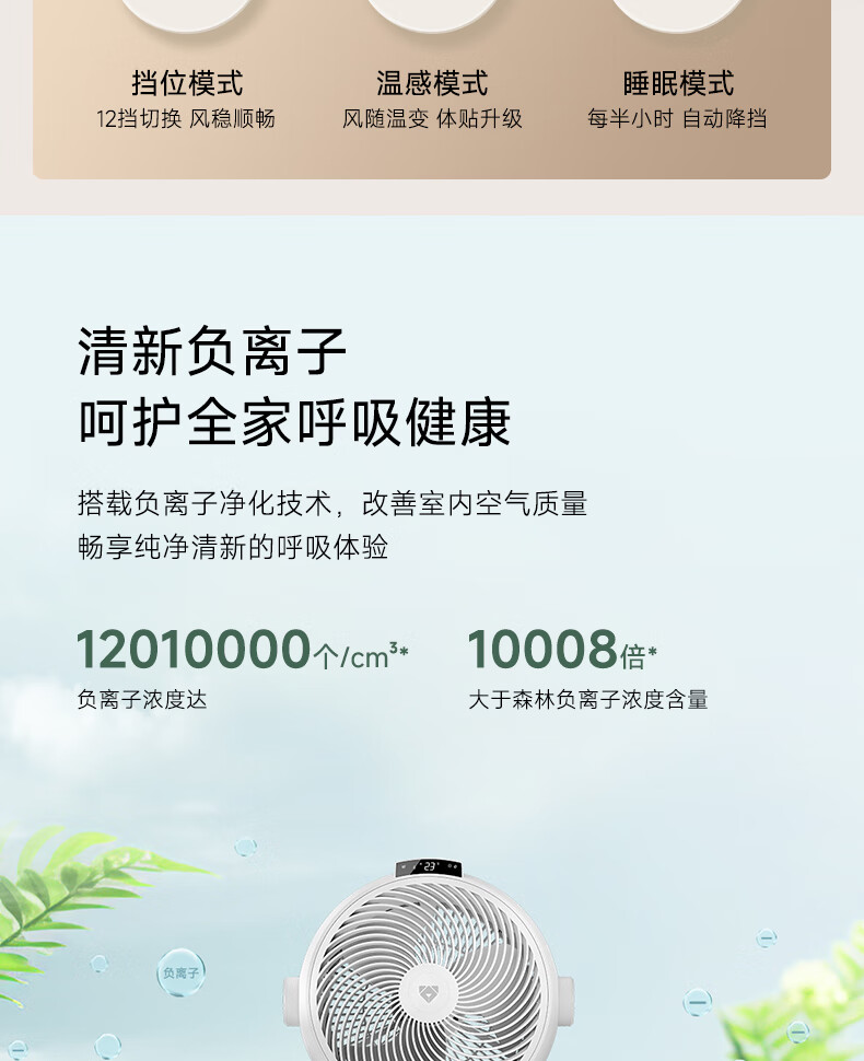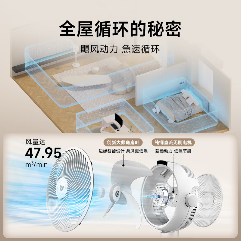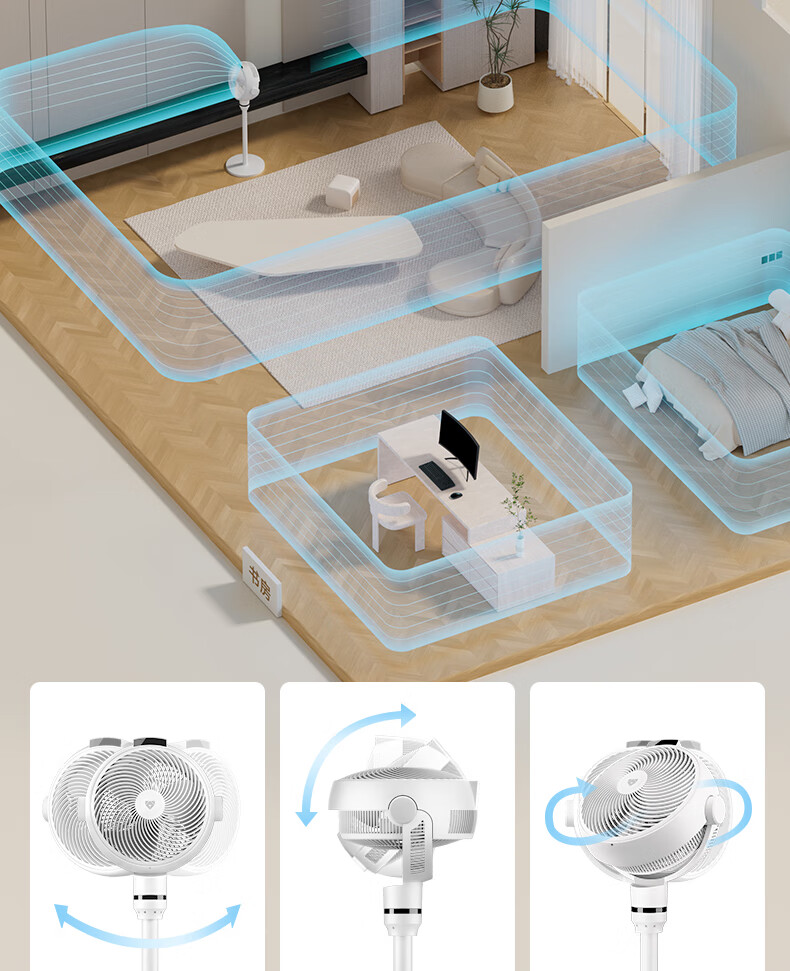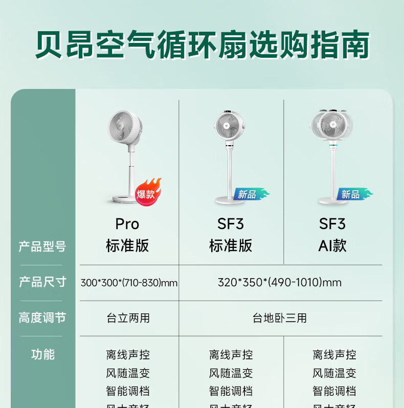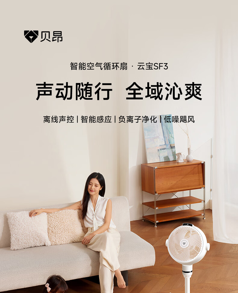 (特)贝昂空气循环扇电风扇空气循环扇静音卧室智能语音家用落地电风扇大风力风扇负离子电扇暴力涡轮小风扇 SF3标配版