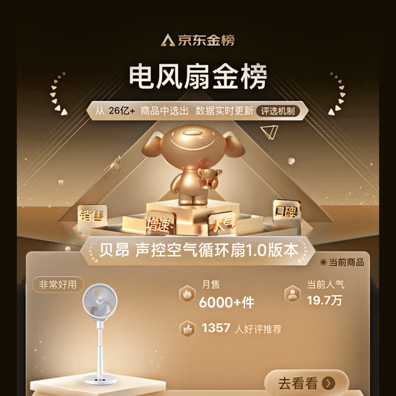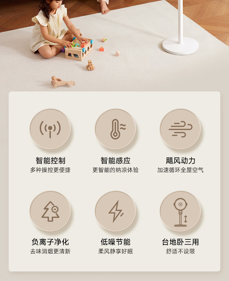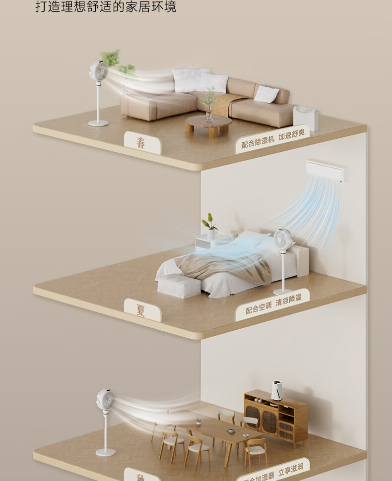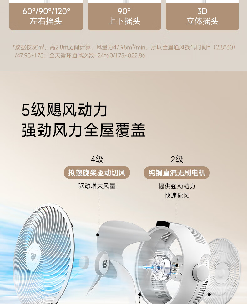 (特)贝昂空气循环扇电风扇空气循环扇静音卧室智能语音家用落地电风扇大风力风扇负离子电扇暴力涡轮小风扇 SF3标配版