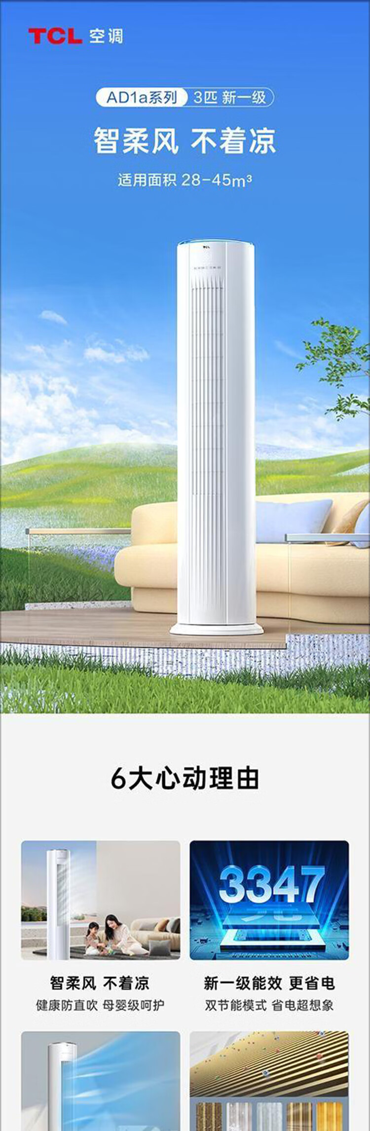 TCL空调3匹 新一级能效 智柔风 双重自清洁 客厅圆柱立柜式空调 KFR-72LW/AD1a+B1
