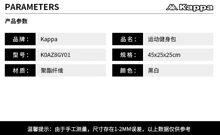 KAPPA运动健身包 K0AZ8GY01