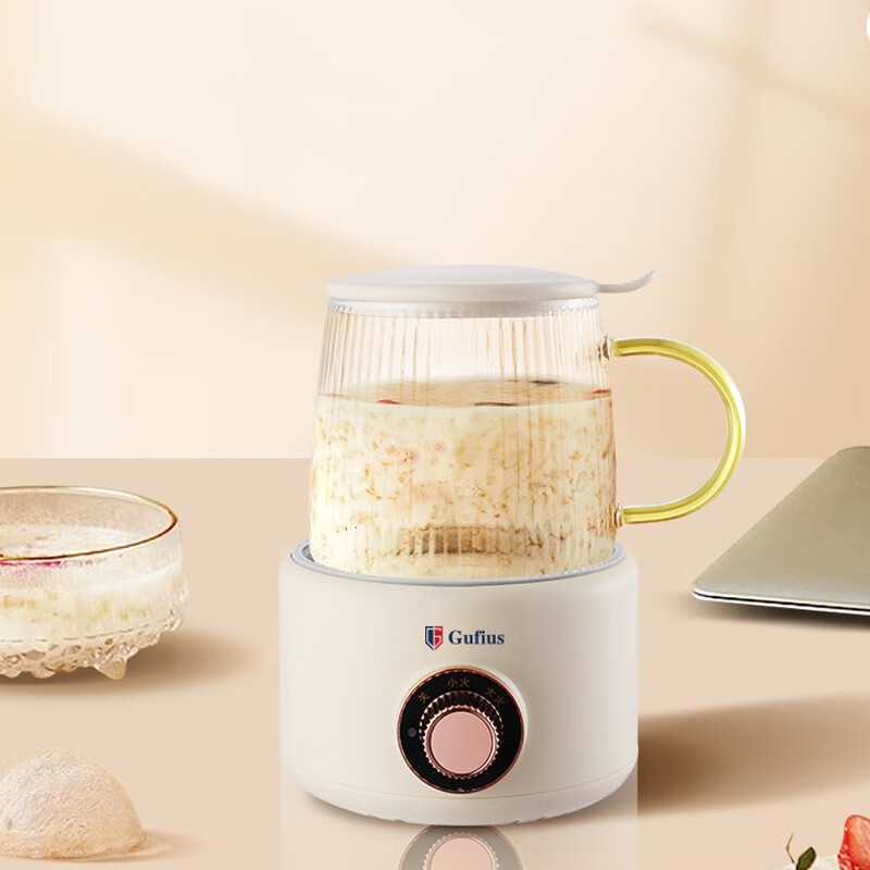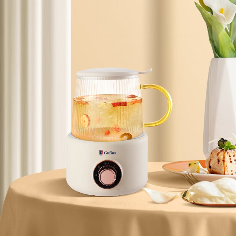 古菲斯(GUFIUS)多功能养生壶 煮茶壶 玻璃茶壶 智能保温烧水壶 电热水壶 养生杯 GFYB-3601 乳白色 0.4L 养生壶